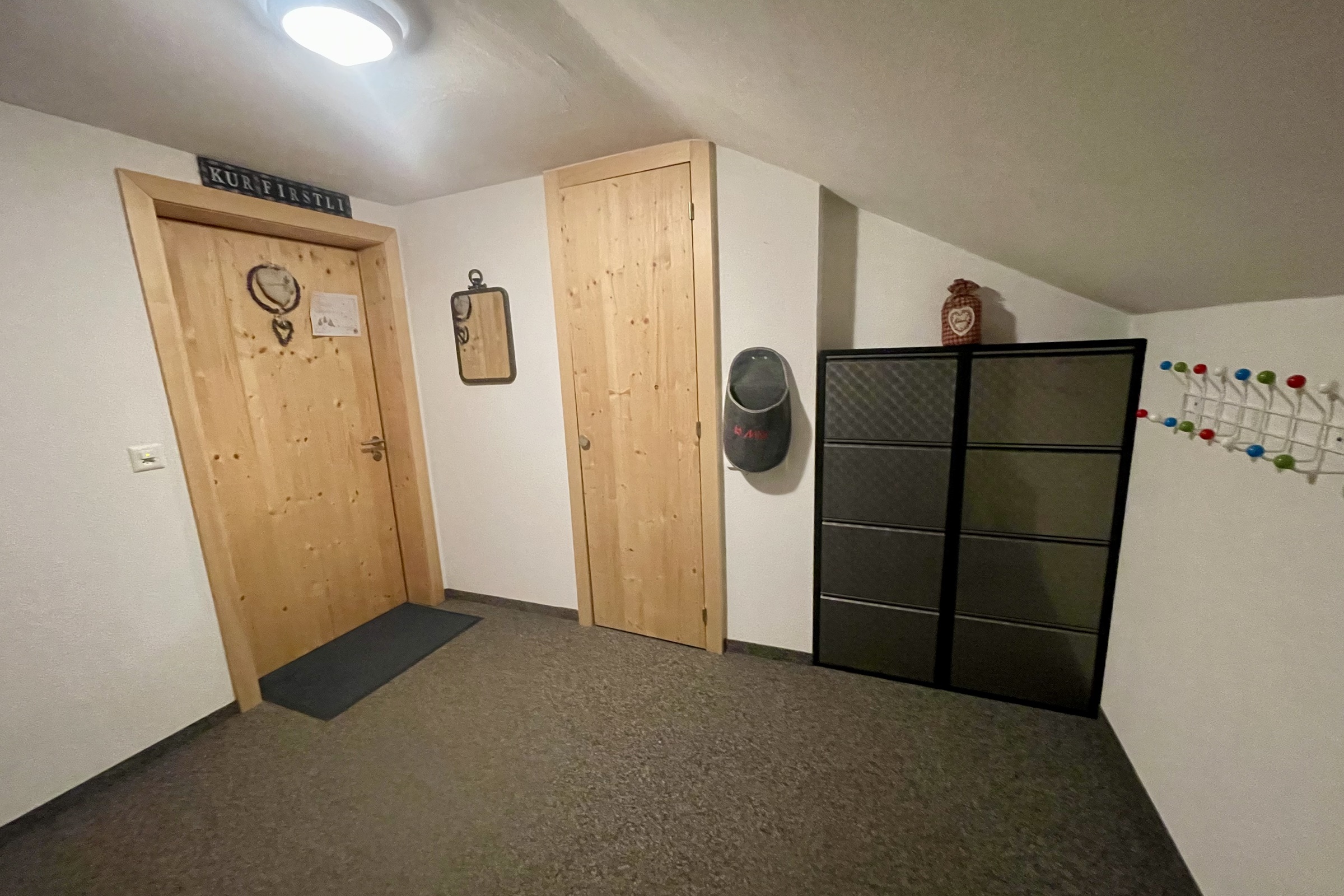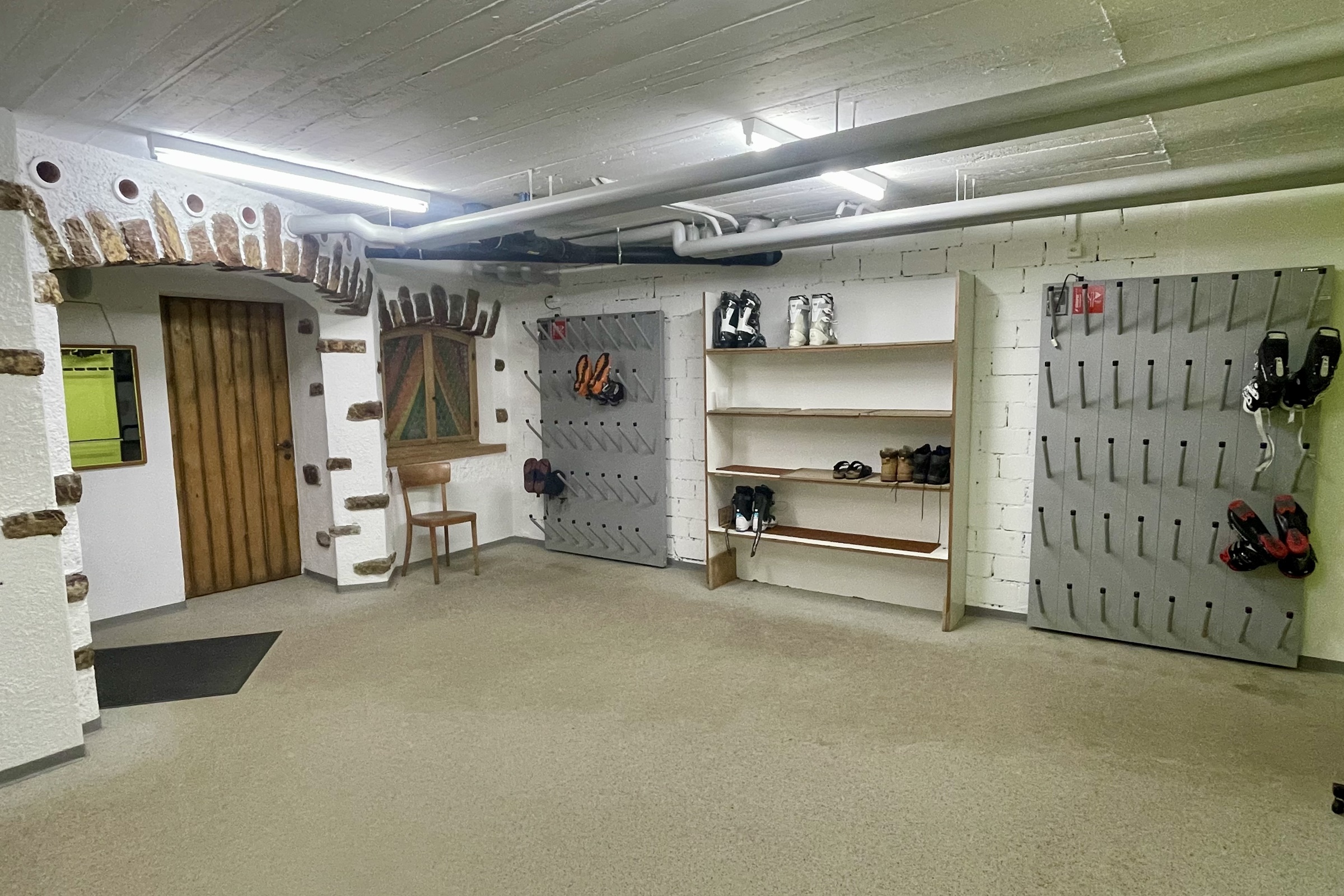Ein geräumiger Abstellraum für Skis, Boards und Räder.