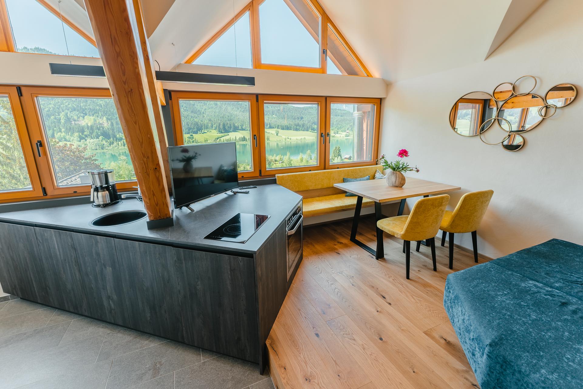 Wir begrüßen Sie in einer der gemütlichen Ferienwohnungen für 2-4 Personen mit herrlichem Ausblick über den Weissensee.
