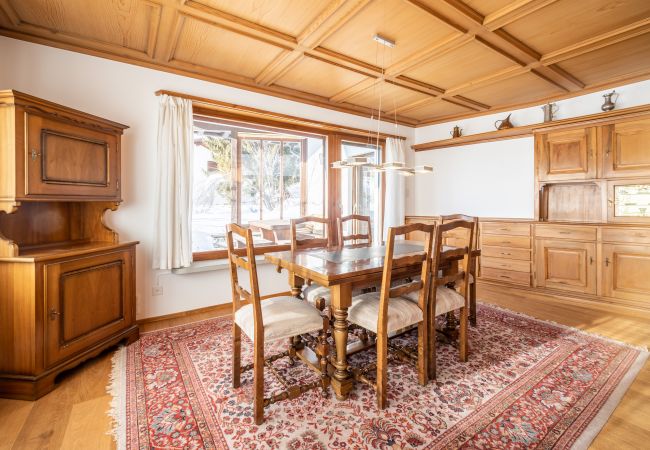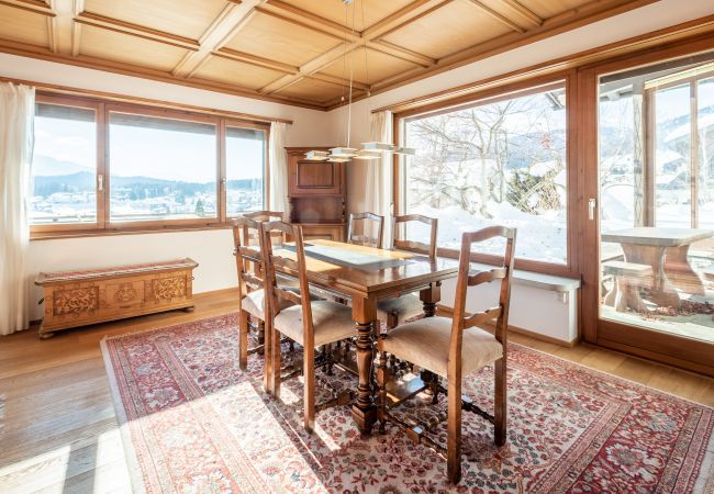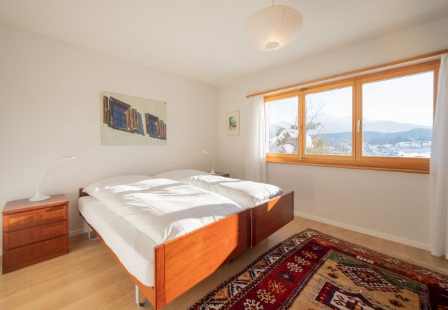 Ruhiges Ferienhaus mit Panoramablick in Flims Dorf! Die Casa Murissen bietet Platz für 10 Personen, wobei sich die fünf Schlafzimmer auf zwei Stockwerke verteilen. Zwei Doppel- und ein Badezimmer mit Badewanne sowie eine separate Toilette sind im ersten Stock. Die grosse, voll ausgestattete Küche versorgt die ganze Familie inklusive Freunde und liegt ebenfalls im ersten Stock. Auf gleicher Höhe steht Ihnen das helle, grosszügige Wohnzimmer, ein grosser, ganztags besonnter Balkon sowie ein gedeckter Sitzplatz zur Verfügung. Im zweiten Stock finden Sie drei Schlafzimmer mit jeweils zwei Betten, zwei Duschen, eine Toilette und einen zusätzlichen Balkon. Der Eingangsbereich mit Garage im Erdgeschoss bieten ausreichend Platz für die Sportausrüstung und eine Waschküche mit Waschmaschine runden das Angebot im Ferienhaus ab.