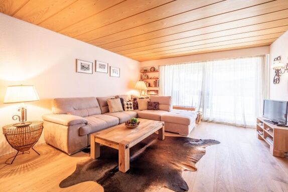 Gemütliche 4.5-Zimmerwohnung in Flims Dorf! Ihre Ferienwohnung ist voll ausgestattet, im Wohnzimmer entspannen Sie auf der grosszügigen Couch oder geniessen einen erfrischenden Apéro am knisternden Feuer. Die drei Schlafzimmer mit zwei Doppel- sowie einem Einzelbett bieten genügend Platz für die ganze Familie. Das Badezimmer mit Badewanne sowie das separate WC sind hell und freundlich. In der Küche finden Sie alles für eine reichhaltige Familienmahlzeit. Auf dem grossen und ganztägig besonnten Balkon mit freier Sicht auf den Crap Sogn Gion lässt sich ein erlebnisreicher Tag perfekt ausklingen. Auch das attraktive und moderne Schwimmbad im Gebäude gehört zu dieser einladenden Wohnung.