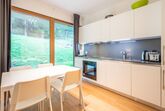 Das gemütliche Apartment verfügt über ein Schlafzimmer mit einem komfortablen Doppelbett und einer zusätzlichen Schlafgelegenheit auf dem Schlafsofa. Die moderne, amerikanische Küche ist komplett ausgestattet und lädt zum gemeinsamen Kochen ein - mit Highlights wie Raclette-Gerät, Kaffeemaschine und Geschirrspüler. Nach einem aufregenden Tag auf den Skipisten können Sie sich in der Sauna entspannen oder die frische Bergluft auf der Terrasse mit Blick in den Wald genießen.