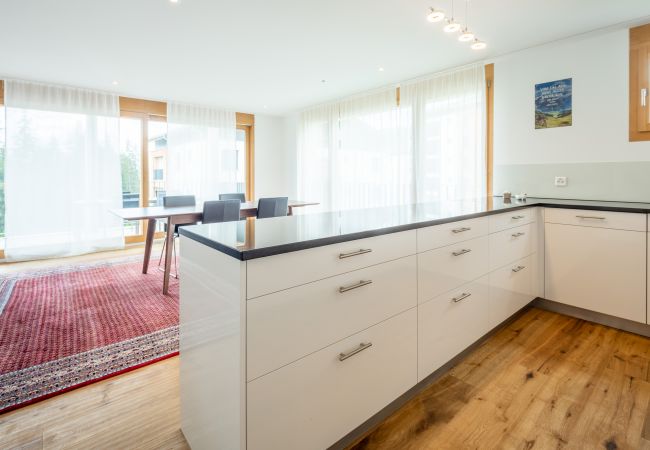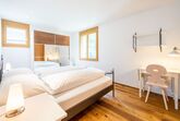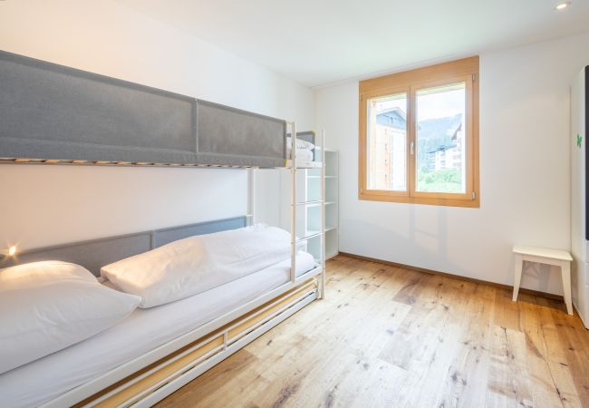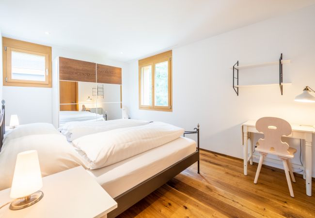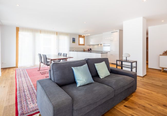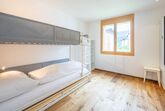 Die 3.5-Zimmer Ferienwohnung in Gehdistanz zur Talstation Laax. Die grosszügige Wohnung 107 m² bietet Ihnen zwei Schlafzimmer mit einem Doppel- (180x200cm)und einem Kajütenbett (90x200cm) (Kapazität für 4 Personen, max. 3 Erwachsene), ein en Suite Badezimmer mit Dusche sowie ein zusätzliches Badezimmer mit Dusche. Die offene Küche ist mit Ceranfeld, einem Kühlschrank, ein Backofen, eine Spülmaschine, eine Kaffeemaschine, einen Toaster, einen Wasserkocher und Raclette ausgestattet und in das das helle Wohn- und Esszimmer mit gemütlichem Sofa und schönem Parkett integriert. Haustiere und Rauchen sind in dieser Wohnung nicht erlaubt. Mit Internetanschluss (WLAN), und Fernseher kostenlos .