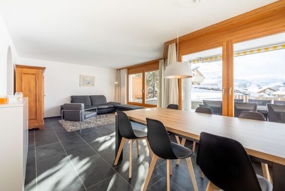 Neu renovierte 3-Zimmer-Wohnung im Herzen von Falera! Verbringen Sie Ihren Urlaub in einem der schönsten Bergdörfer der Schweiz und genießen Sie den wunderbaren Blick auf die Bündner Berge. Die Wohnung ist mit viel Liebe zum Detail eingerichtet, und die sieben Betten sind auf drei Doppelzimmer und ein Einzelzimmer verteilt, jedes mit einem individuellen Touch. In der modernen und voll ausgestatteten Küche werden im Handumdrehen köstliche Mahlzeiten zubereitet, und dank der Größe ist sie der ideale Treffpunkt, um erlebnisreiche Tage Revue passieren zu lassen und neue Abenteuer zu planen. Zusätzlich zu einem großzügigen Badezimmer mit Dusche steht Ihnen ein separates WC zur Verfügung.