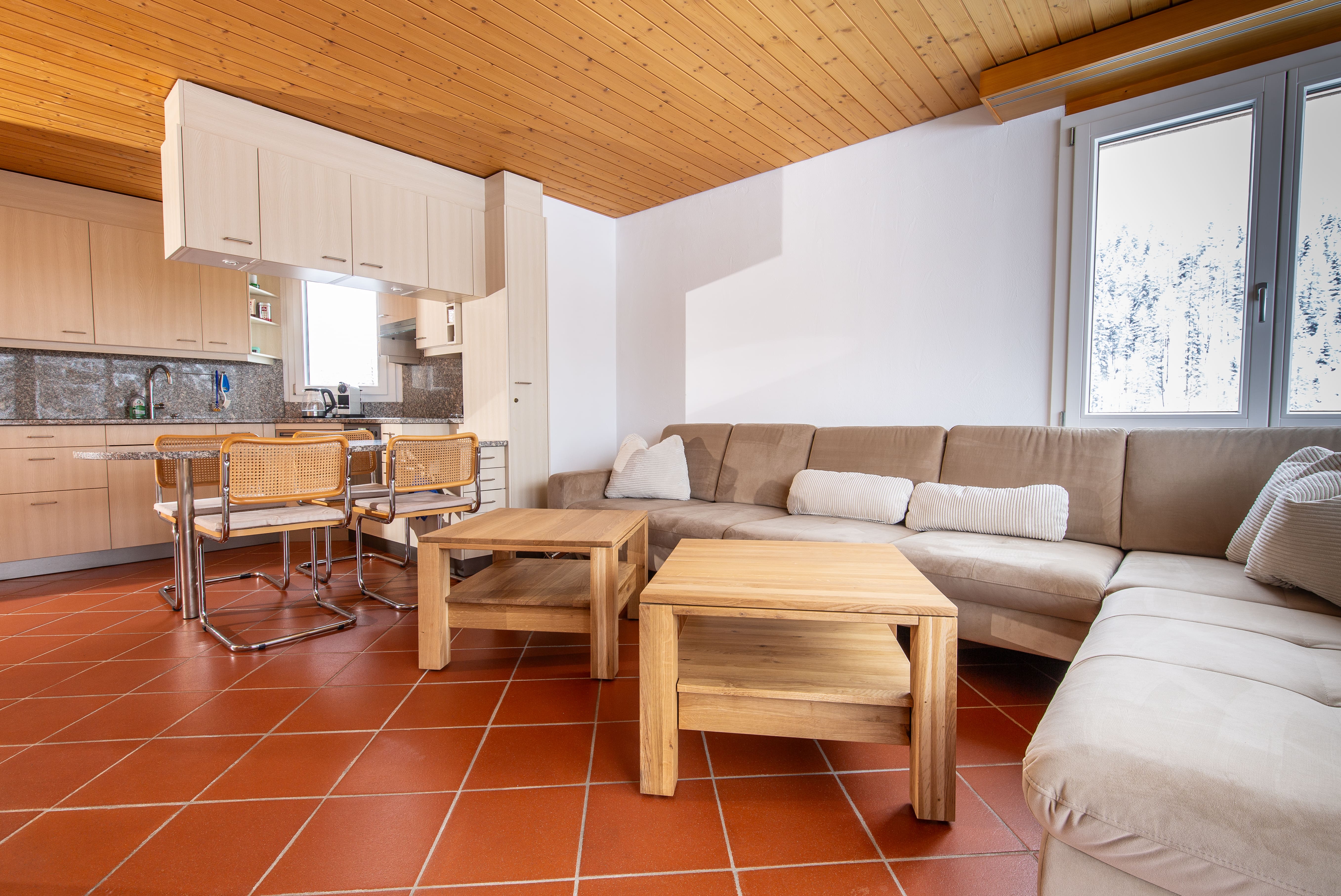 Die Wohnung befindent sich in einem gepflegten Mehrfamilienhaus, mit einer wunderschönen Aussicht auf die Berge. Die Wohnung hat 2 separate Schlaffzimmer, sowie ein grosszügier Wohnbereich mit Essnische und offener Küche Die Wohnung ist ca. 70 m2 gross und hochwertig ausgestattet. Das Badezimmer mit Dusche, Waschmaschine und Tumbler wurde im Jahr 2024 renoviert. Die Schlafzimmer und Wohnzimmer wurden ebenfalls in diesem Jahr ersetzt.Unterhaltungselektronik; Grossbildfernseher, WiFi con Swisscon mit blue TV, Apple TV