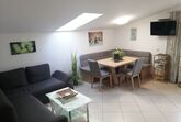 Diese traumhafte Ferienwohnung im 1. Stock besteht aus einer Wohnküche mit Essecke, Wohnlandschaft, TV/Sat, südseitiger Balkon und einem Doppelzimmer. Die Küche ist bestens ausgestattet (Geschirrspüler, Backrohr, Tiefkühleinheit etc.) Handtücher, Geschirrtücher , Bettwäsche und Toilettepapier inkl. Die Wohnlandschaft kann auch als Bett für 2 Kinder /Jugendliche umgebaut und verwendet werden. Großes Bad mit Badewanne, Dusche und WC. Kinder können im Garten die Spielgeräte nützen. Kostenloses W-Lan und Parkplatz vor dem Haus.