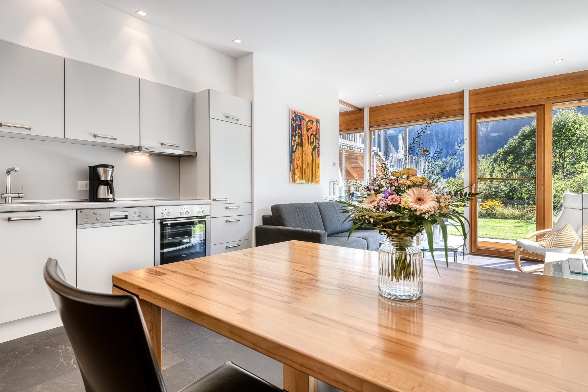 Jedes Schlafzimmer verfügt über ein eigenes Badezimmer – das Masterbedroom erwartet Dich mit einer luxuriösen, freistehenden Whirlpool-Badewanne, einer großzügigen Dusche und einem eigenen Ankleideraum. In der modernen, voll ausgestatteten Küche fehlt es an nichts: Vom Sodastream bis hin zu Raclette-Geschirr ist alles für einen geselligen Abend vorbereitet. Auch für die kleinen Gäste ist gesorgt – eine Spielecke macht das Chalet zu einem familienfreundlichen Ort.