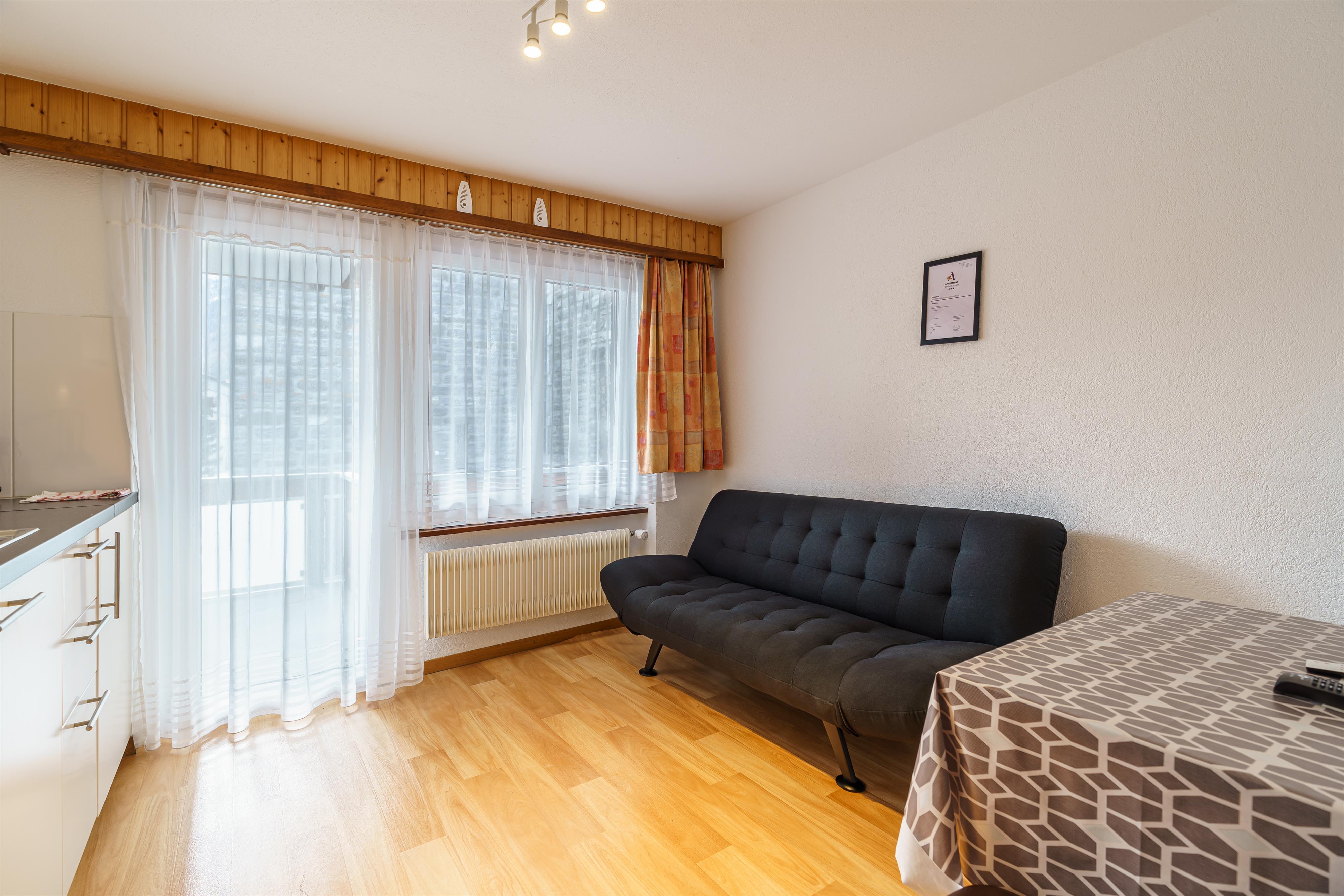 Von Ihrem Balkon aus genießen Sie einen wunderschönen Blick auf die umliegende Berglandschaft. Das Badezimmer ist mit einer Dusche und einem WC ausgestattet.