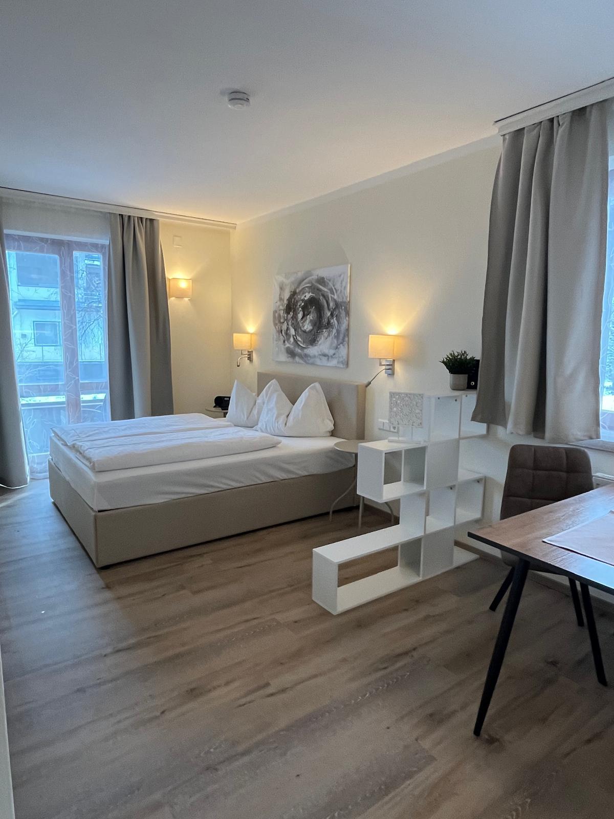 Studio-Appartement mit 30 m² im Erdgeschoss, Küche/Wohnraum, 1 Doppel/Schlafbett, WC/Dusche, SAT-TV, Radio, Telefon, Zimmersafe, Brötchenservice, Balkon, Gratis W-LAN
