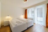 Die 70 m² große Ferienwohnung im Haus City bietet Platz für bis zu 6 Personen. Sie besteht aus zwei Schlafzimmern: einem Doppelzimmer und einem Zimmer mit Etagenbett. Zudem gibt es ein Schlafsofa im Wohnzimmer, das für zwei weitere Personen geeignet ist. Ein Kleinkind kann ebenfalls problemlos untergebracht werden.