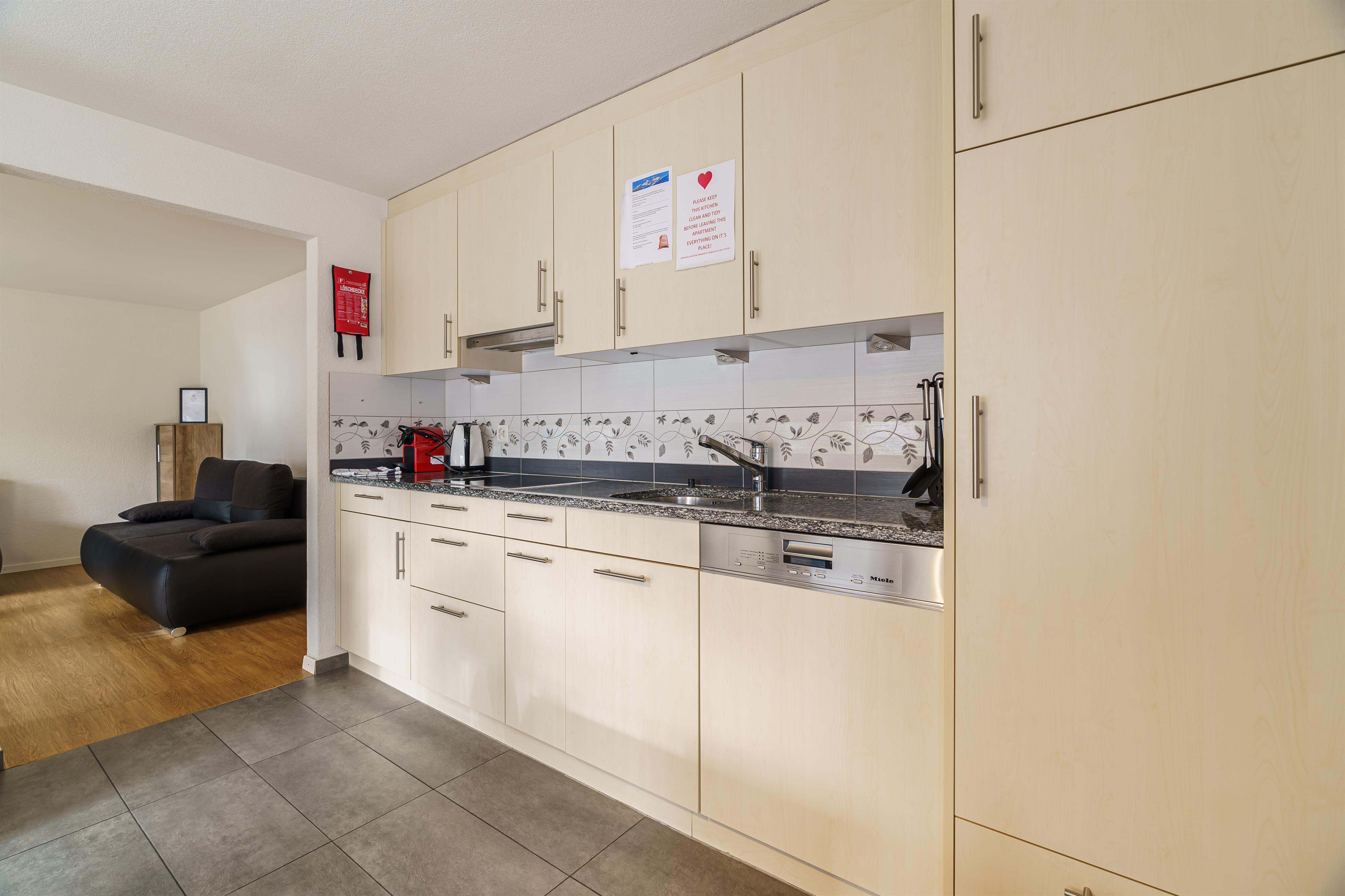 Die gut ausgestattete Küche bietet alles, was Sie für Ihre Selbstverpflegung benötigen, darunter ein Kühlschrank mit Gefrierfach, eine Kaffeemaschine und sämtliche Küchenutensilien.
