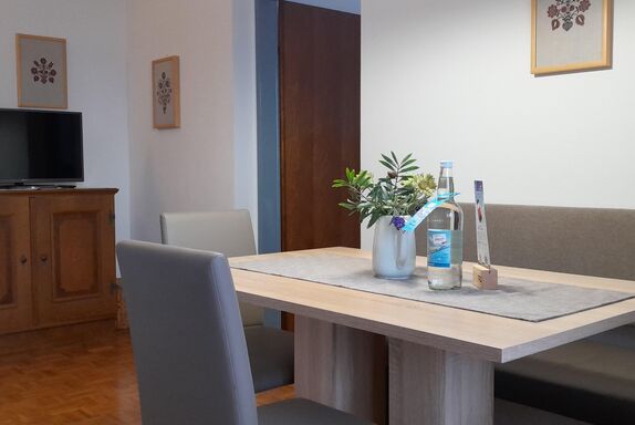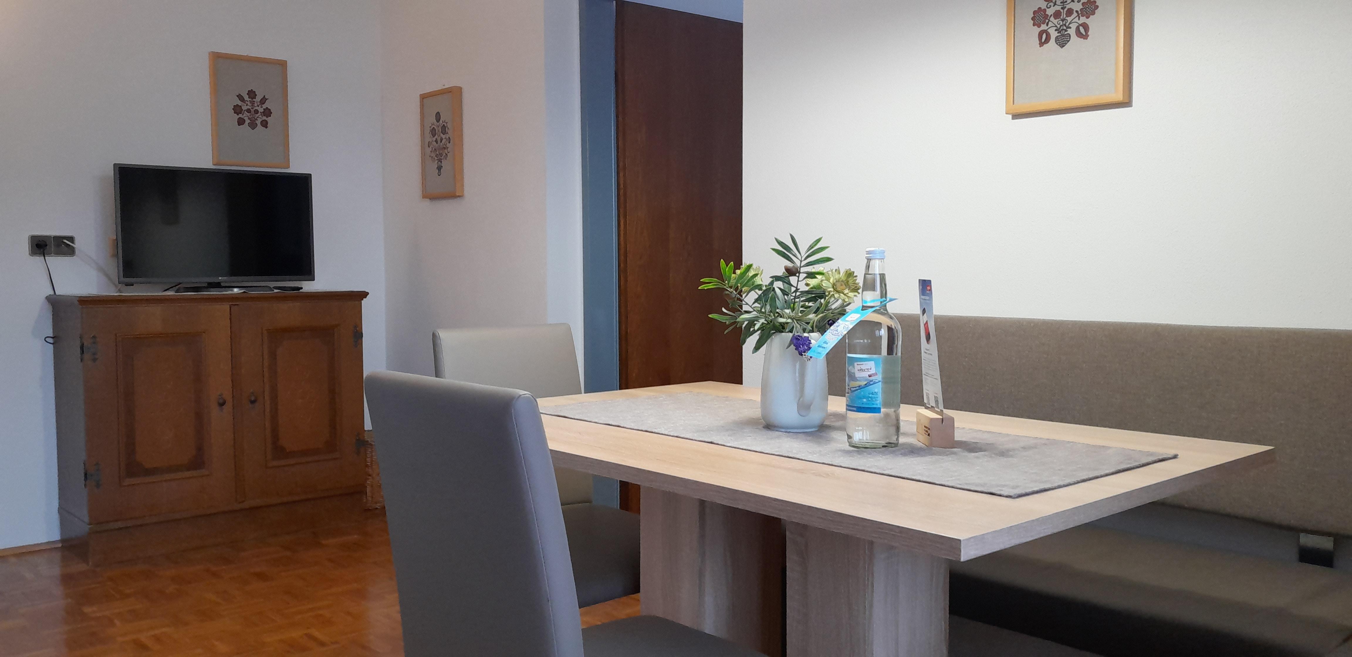Appartement mit 45 m² im 1. Stock, Küche/Wohnraum mit Schlafmöglichkeit für 2 Personen, 1 Doppelbett/schlafzimmer, WC/Dusche getrennt, SAT-TV, Radio, Telefon, Zimmersafe, Brötchenservice, Balkon, Gratis W-LAN.