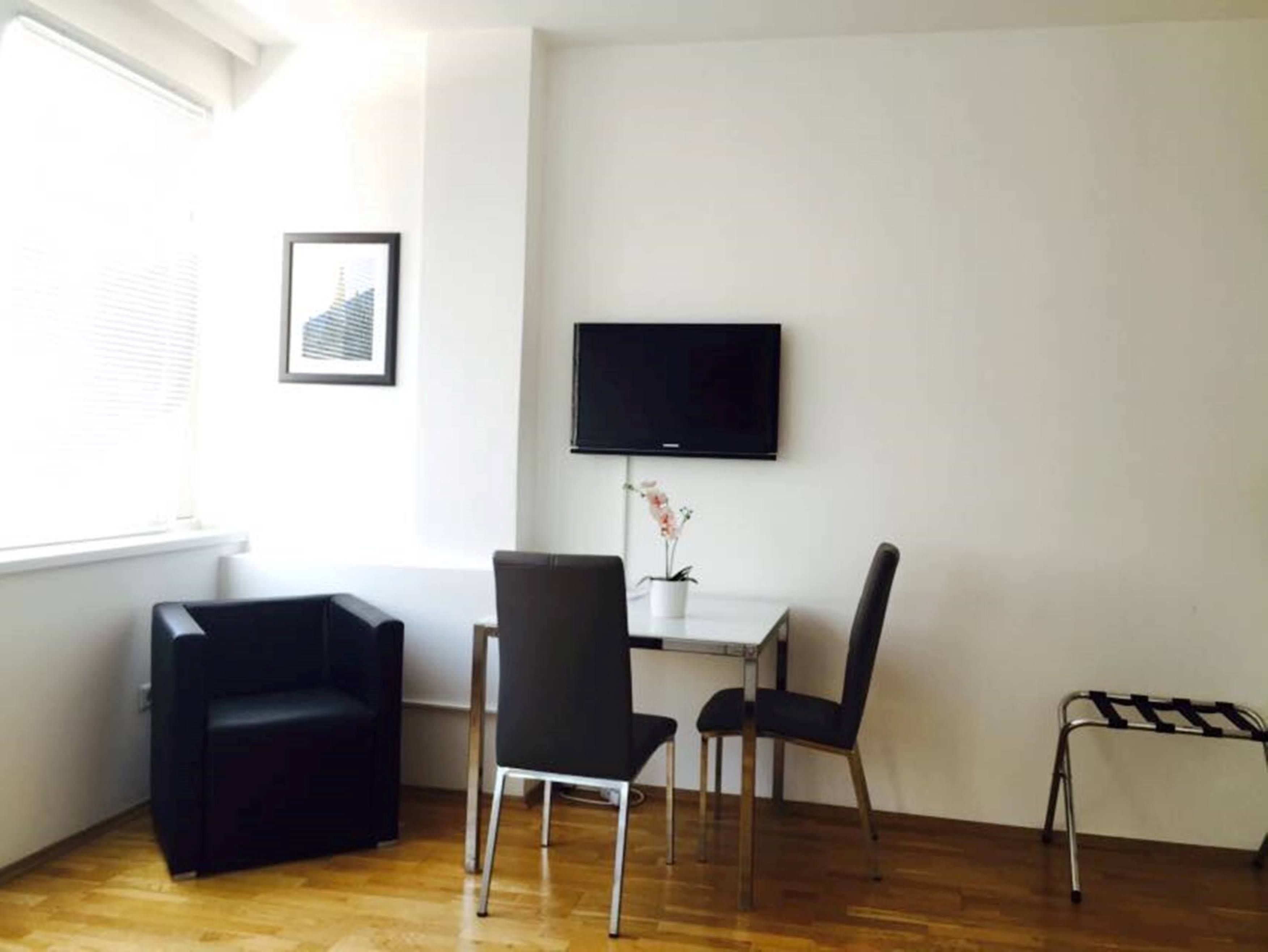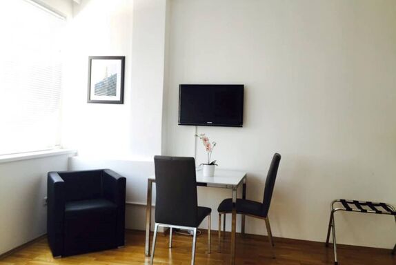 Die stilvollen Studios und Apartments sind mit dem Aufzug erreichbar, modern eingerichtet und mit Holzböden ausgestattet. Jedes Zimmer verfügt über Sofabereich, einen Esstisch und ein modernes Bad.