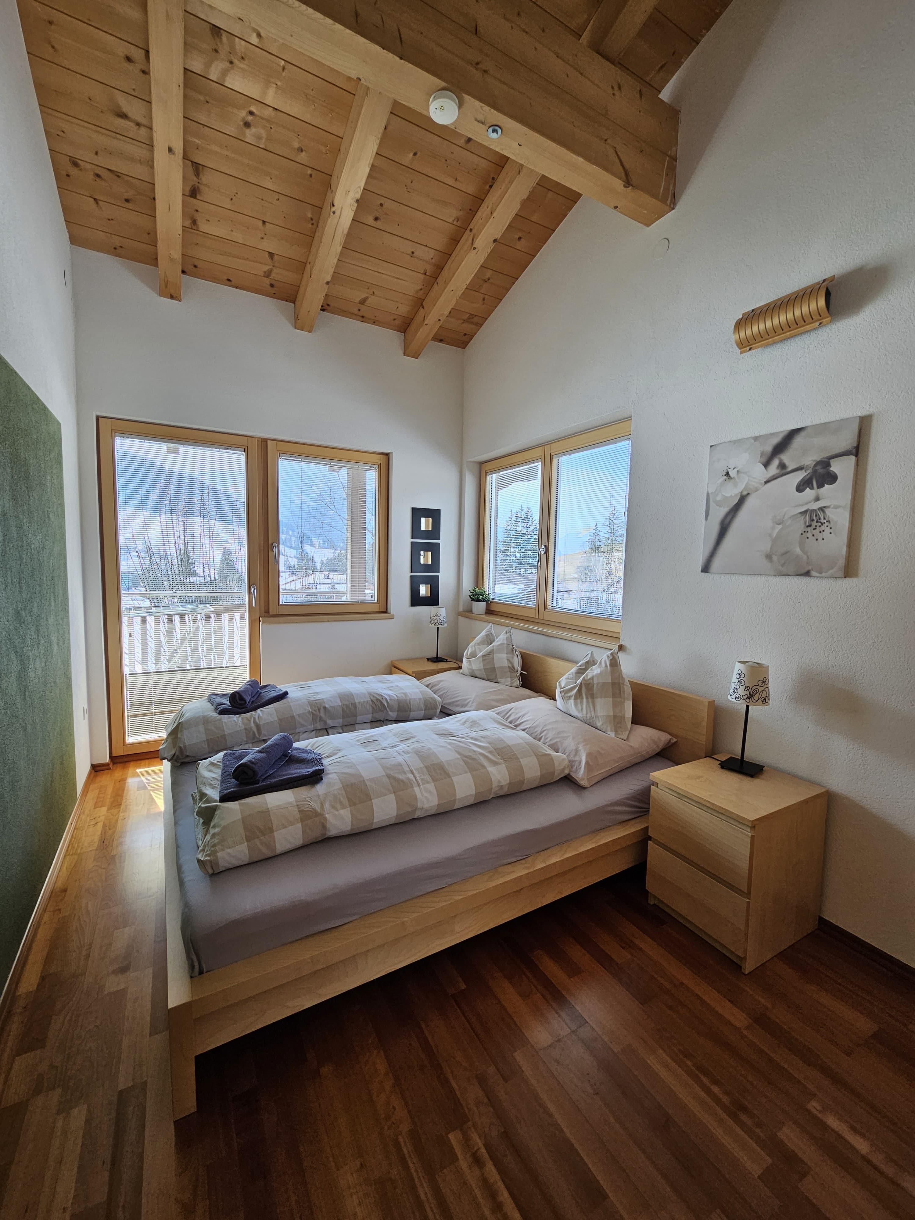 Luxuriöses Ferienhaus in modernem Holzbaustil mit 3 getrennten Schlafzimmern, 2 Badezimmern, 3 Toiletten, grosse Wohnküche mit moderner Ausstattung, Wohnzimmer mit offenem Kamin, einer Lese-Ecke und Kabel-TV, 2 Süd-Balkone im 1.OG, zudem stehen ein eigener großer Garten mit Terrasse und gemütlicher Lounge sowie ein Carport zur Verfügung.