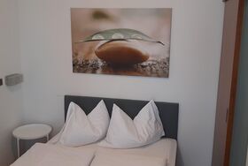 1 Schlafzimmer mit 1 Queensizebett, WC/Dusche getrennt, SAT-TV, Radio, Telefon, Zimmersafe, Brötchenservice, Balkon, Gratis W-LAN.