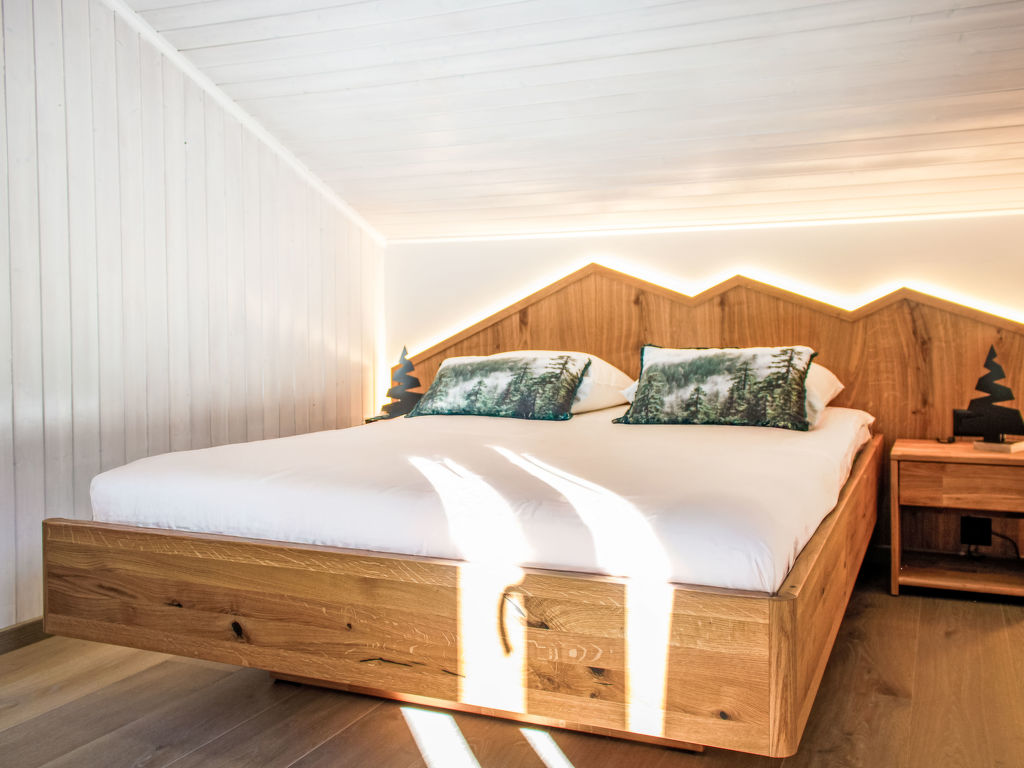 Boletus, 4-Zimmer-Chalet 65 m2 auf 2 Stockwerken. Renoviert im Jahre 2024, komfortabel und geschmackvoll eingerichtet: Eingang. Wohn-/Esszimmer mit Schwedenofen und Kabel-TV. Offene Küche (Geschirrspüler, 4 Glaskeramikplatten, Toaster, Wasserkocher, Mikrowelle, elektrische Kaffeemaschine, Kapseln für die Kaffeemaschine (Nespresso) extra, Racletteofen, Fondue Set (Käse)). Dusche/WC. E-Heizung. Obergeschoss: 1 Zimmer mit 1 x 2 Etagenbetten (90 cm, Länge 200 cm). 2 Zimmer, jedes Zimmer mit 1 franz. Bett (140 cm, Länge 200 cm). Bad/WC. Sehr schöne Sicht auf die Berge. Zur Verfügung: Haartrockner. Internet (Wireless LAN, gratis). Parkplatz. Bitte beachten: Nichtraucher-Unterkunft. Rauchmelder.