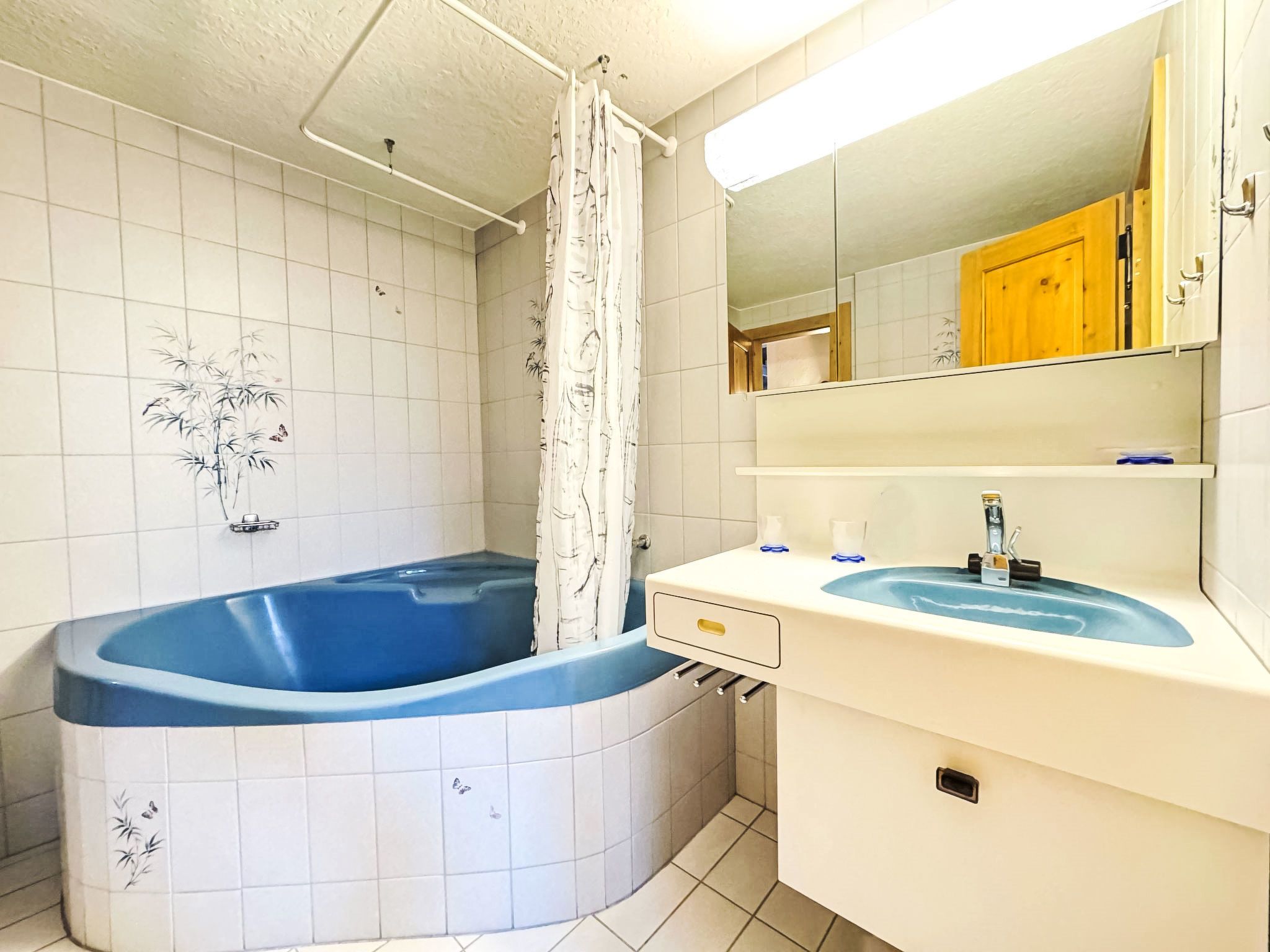 3-Zimmer-Wohnung 152 m2 auf 2 Stockwerken im 4. Stock, Südwestlage. Einfach und komfortabel eingerichtet: Wohn-/Schlafzimmer mit 1 Doppeldiwanbett (140 cm, Länge 200 cm), offenem Kamin (nur Deko), Digital-TV. Ausgang zum Balkon, Richtung Süden. 1 Doppelzimmer mit 1 Doppelbett (2 x 90 cm, Länge 200 cm). Offene Küche (Backofen, Geschirrspüler, 4 Glaskeramikplatten, Mikrowelle, Tiefkühler, elektrische Kaffeemaschine). Bad/WC. Heizung. Obergeschoss: (Wendeltreppe) 1 Doppelzimmer mit 1 Doppelbett (2 x 90 cm, Länge 200 cm). Ausgang zum Balkon, Richtung Süden. Bad/Dusche/WC. Balkonmöbel. Eingeschränkte Sicht auf das Matterhorn. Zur Verfügung: Waschmaschine. Internet (Wireless LAN, gratis). Bitte beachten: Nichtraucher-Unterkunft.