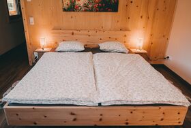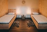 • Schlafzimmer mit zwei Einzelbetten aus Zirbenholz
