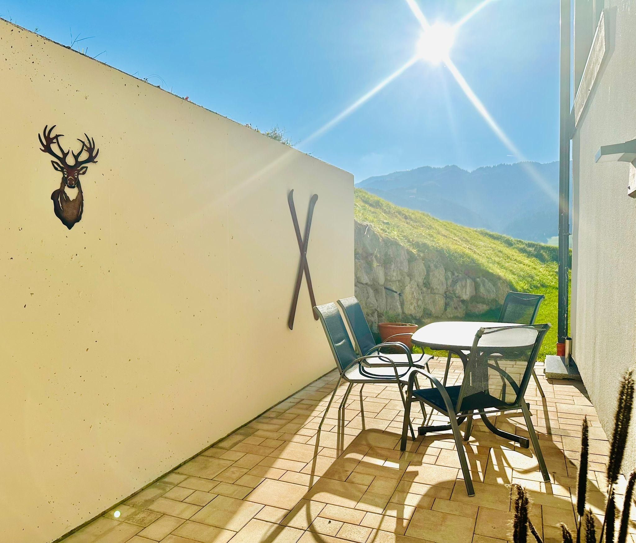 Terrasse mit Bergblick direkt zum Skigebiet Roggenboden