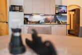 Apartment mit 53m² bestehend aus zwei Schlafzimmern mit Doppelbetten (+Gitterbett) für 2 - 6 Personen, Wohnküche mit Ausziehcouch (Sat-TV,Geschirrspüler, Kaffeemaschine, Mikrowelle, E-Herd mit 4 Kochstellen und Backrohr, Wasserkocher sowie Wlan). Dusche und WC getrennt, Vorraum und Balkon.
