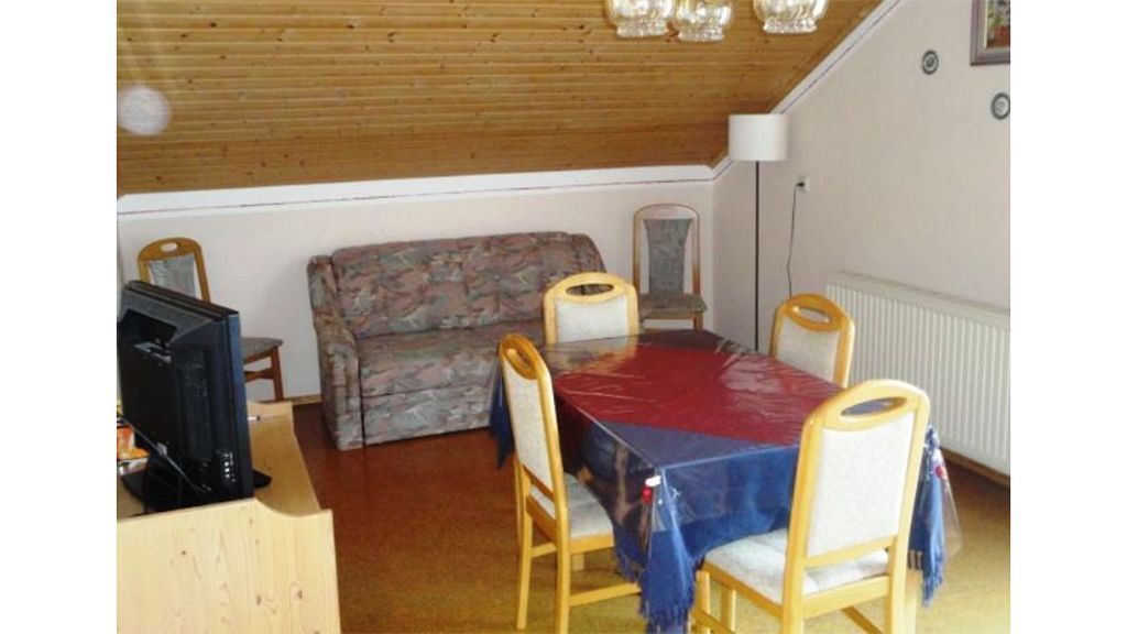 Eine Ferienwohnung für bis 5 Personen, Nordseite - Wohnküche mit Essplatz und Doppelcouch.