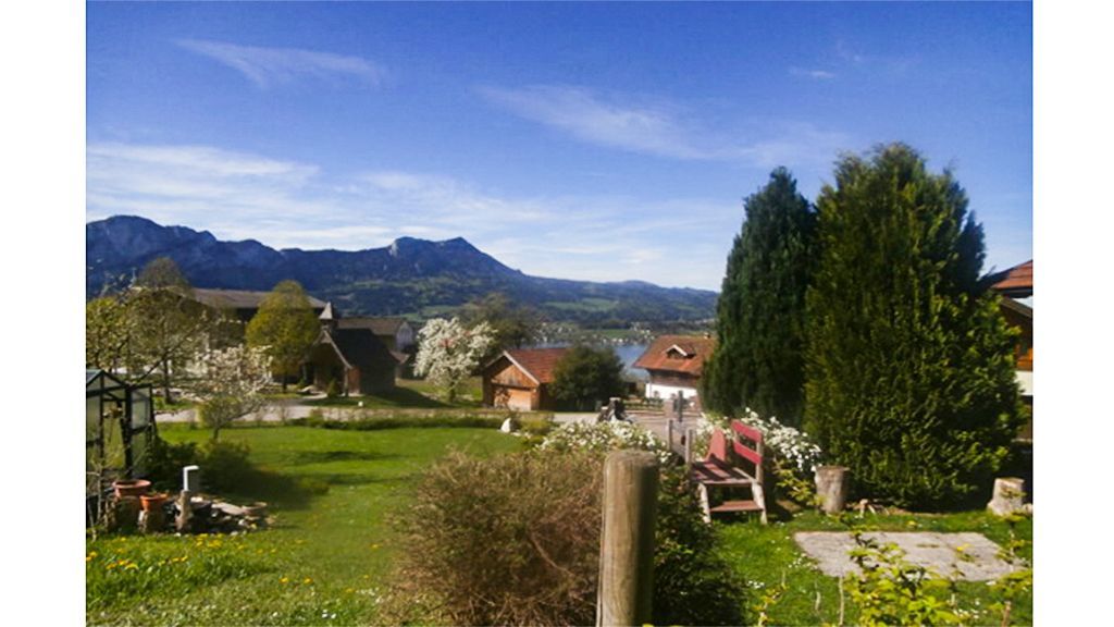 Zwei Ferienwohnungen für bis zu 5 Personen, süd-/westseitig mit Balkon und Blick zum See und in die Berge.