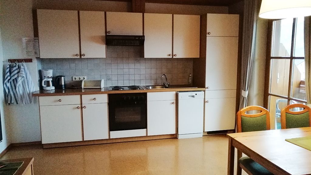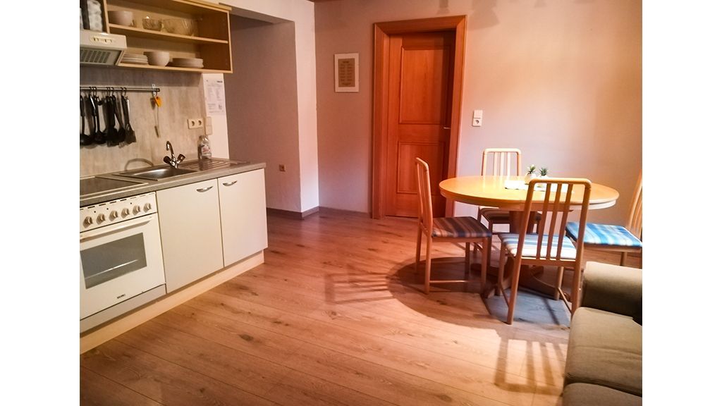 Eine Ferienwohnung für bis 5 Personen, Nordseite - Wohnküche mit Essplatz und Doppelcouch.