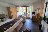 Der Außenbereich lädt mit seiner sonnigen Terrasse zum Entspannen in der ruhigen Umgebung ein. Für Autofahrer stehen komfortable Parkmöglichkeiten zur Verfügung: ein kostenloser Parkplatz direkt vor dem Haus und auf Wunsch ein mietbarer Einstellplatz in der Garage. Hunde sind bei uns nach Vereinbarung ebenfalls herzlich willkommen, sodass Ihr vierbeiniger Freund Sie auf dieser Reise begleiten kann.