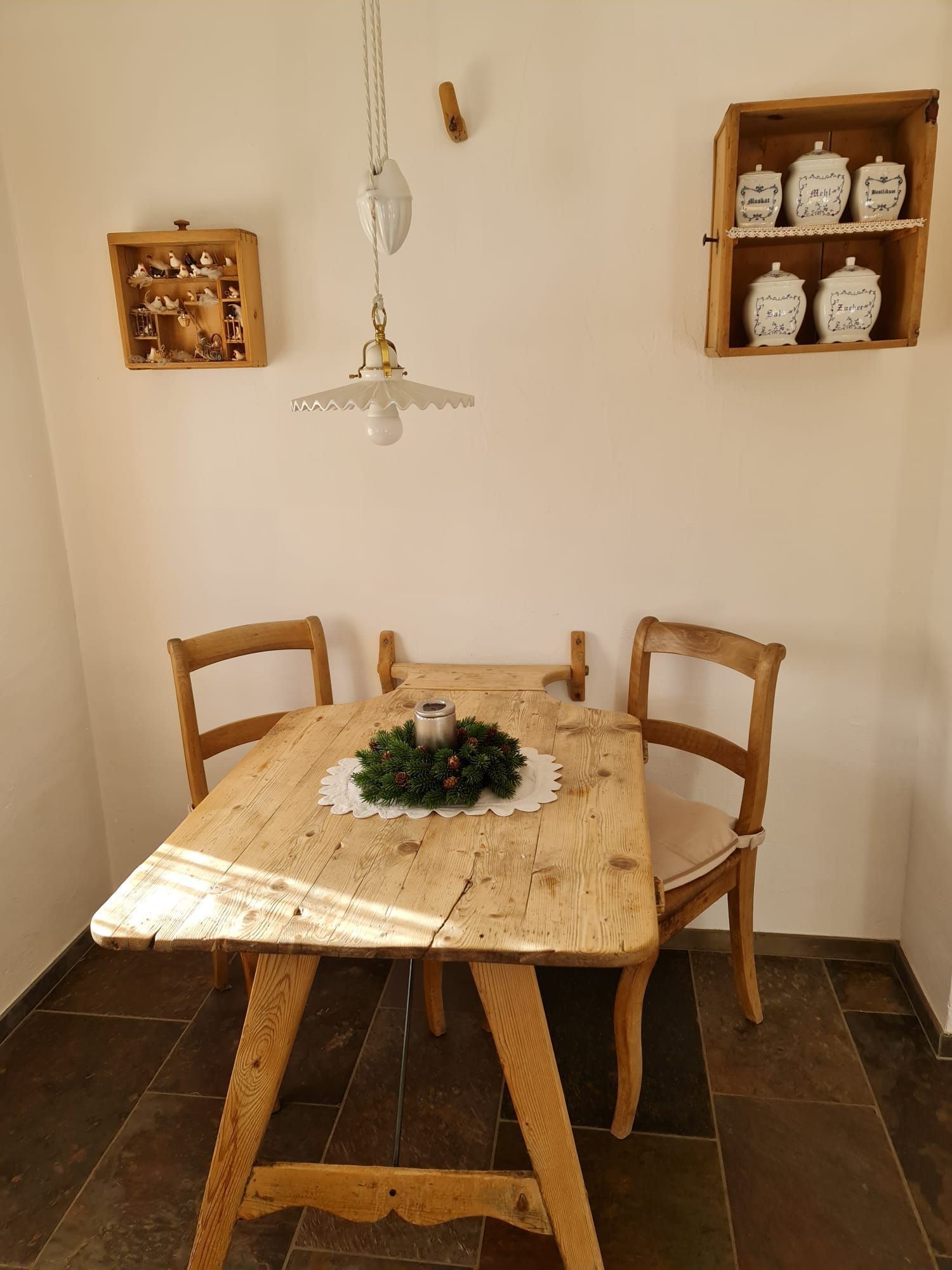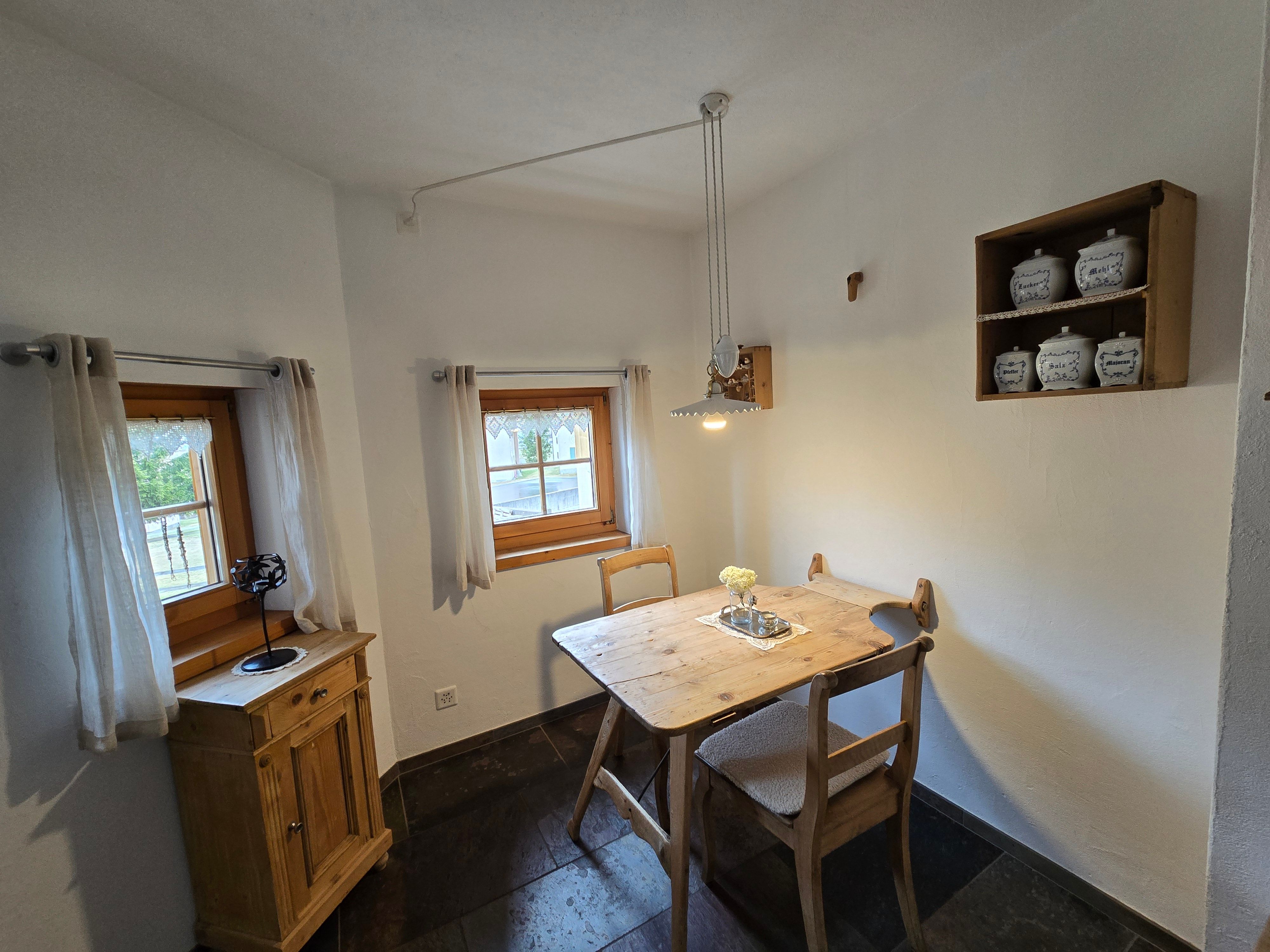 Im Inneren erwartet Sie eine gemütliche Atmosphäre, unterstützt durch einen Steinboden mit Bodenheizung. Die gut eingerichtete Küche bietet alles, was das Herz begehrt: 2 Kochplatten, Kühlschrank mit Tiefkühlfach, eine Auswahl an Kaffeemaschinen - ob Filter oder Kapsel, Fondue- und Raclettegeschirr sowie einen Wasserkocher. Auf Wunsch stellen wir Ihnen gerne auch eine Mikrowelle zur Verfügung. Für Sportbegeisterte steht ein Ski- und Fahrradraum bereit, und auch für Ihre sonstigen Gegenstände gibt es genügend Abstellplatz im Keller.