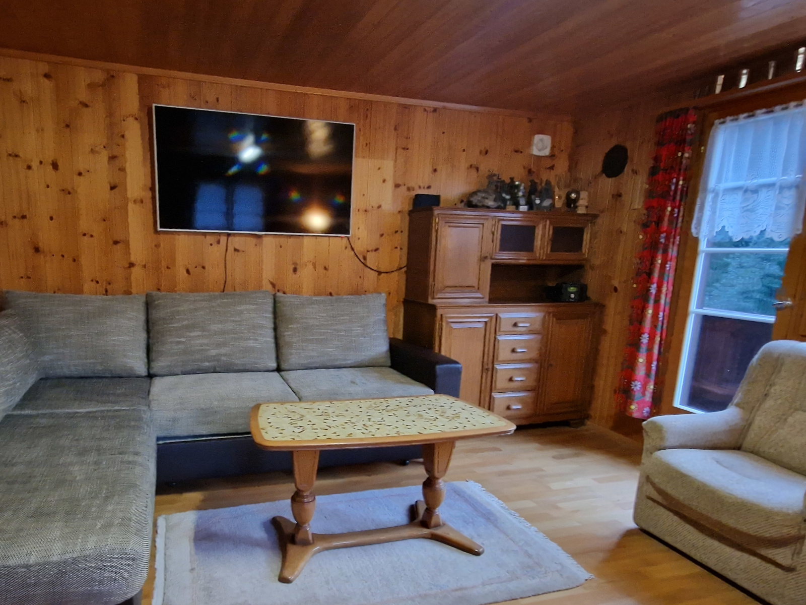 Ein Wohnzimmer mit 2 Sofas. Im Wohnzimmer befindet sich ein Kamin (Holz wird bereitgestellt), Flatscreen-TV 55 Zoll mit HDMI-Anschluss (ohne Kabel- oder Netzanschluss). Das Esszimmer ist Rustikal eingerichtet; Esstisch für 6 Personen.Küche: