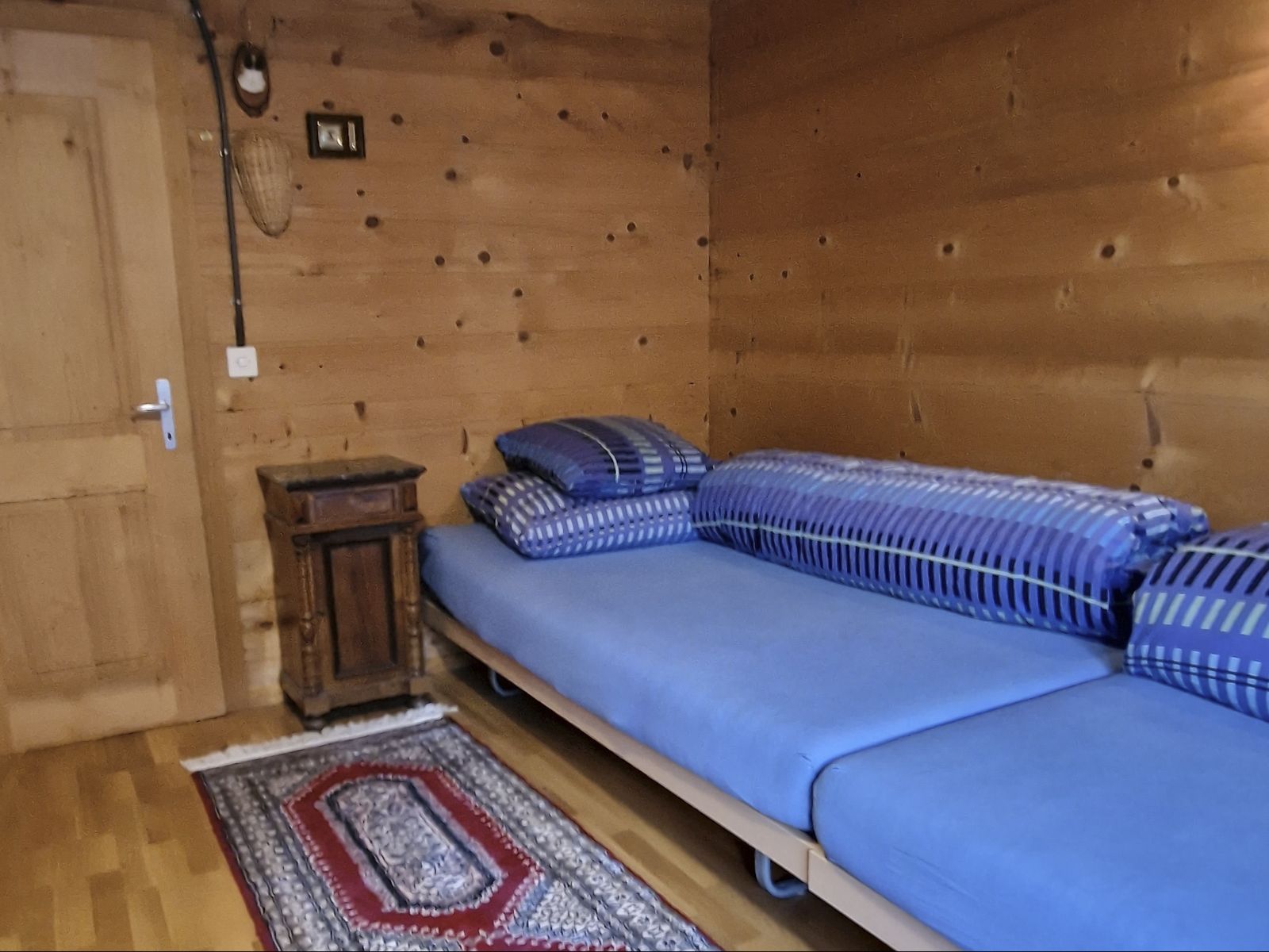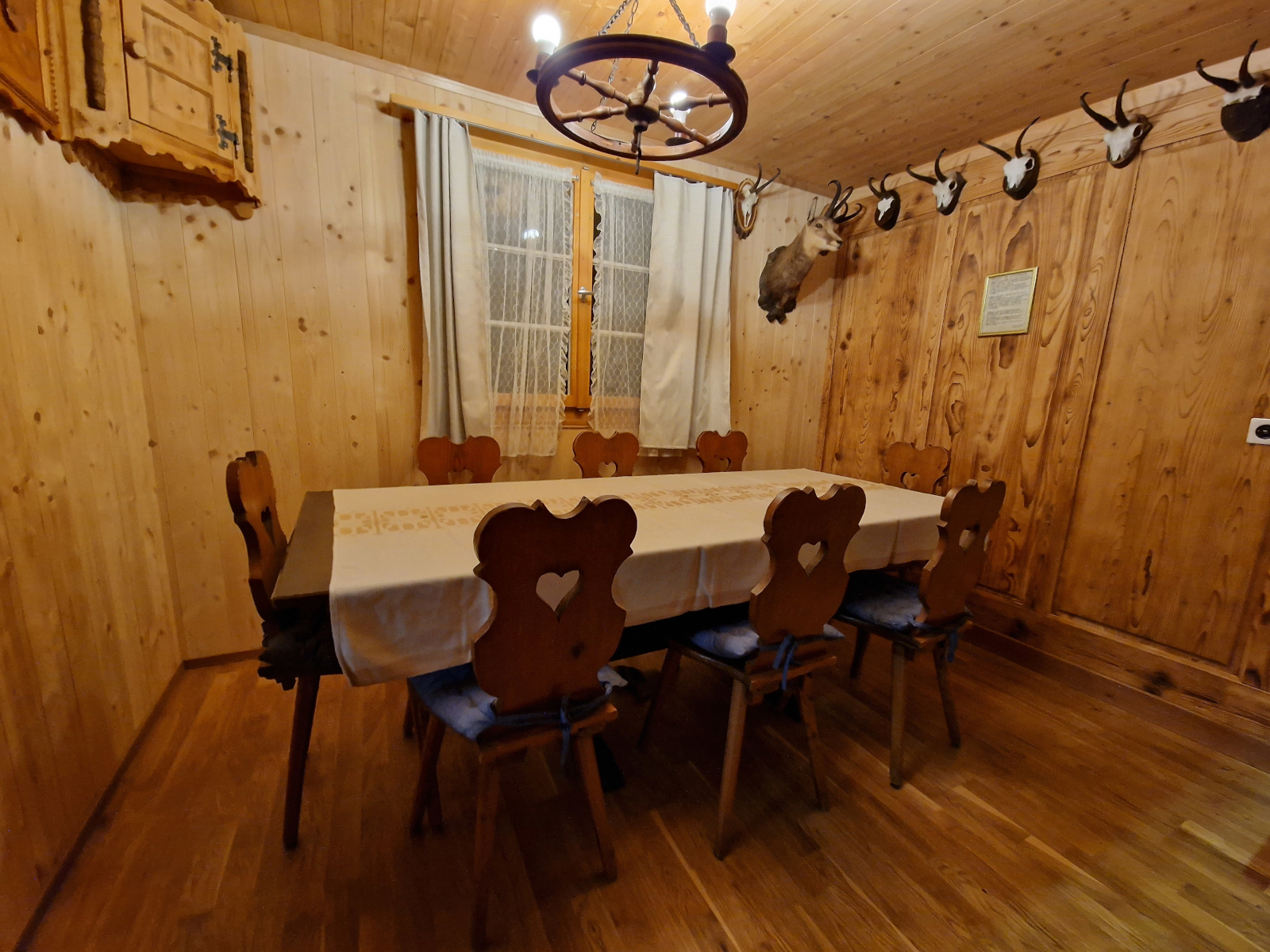 Das 3.5-Zimmer Berghaus (100m2) befindet sich rund 40m von der Talstrasse entfernt (mit Zufahrt) umgeben von Wiesen.Im Erdgeschoss befinden sich die Stube, das Esszimmer, die Küche, WC/Douche und ein Schlafzimmer für 2 Personen. Im Obergeschoss befindet sich ein weiteres Schlafzimmer für 4 Personen. Bei Bedarf können in der Stube weitere 2 Personen schlafen (Bettsofa). Das Berghaus ist an das Stromnetz angeschlossen (Warmwasser; Kochherd) und man ist online über das Swisscom-Netz. (Mobile Daten)Das Berghaus eigent sich hervorragend für Outdoor-Familienferien und als Ausgangspunkt für Bergsteiger.