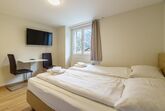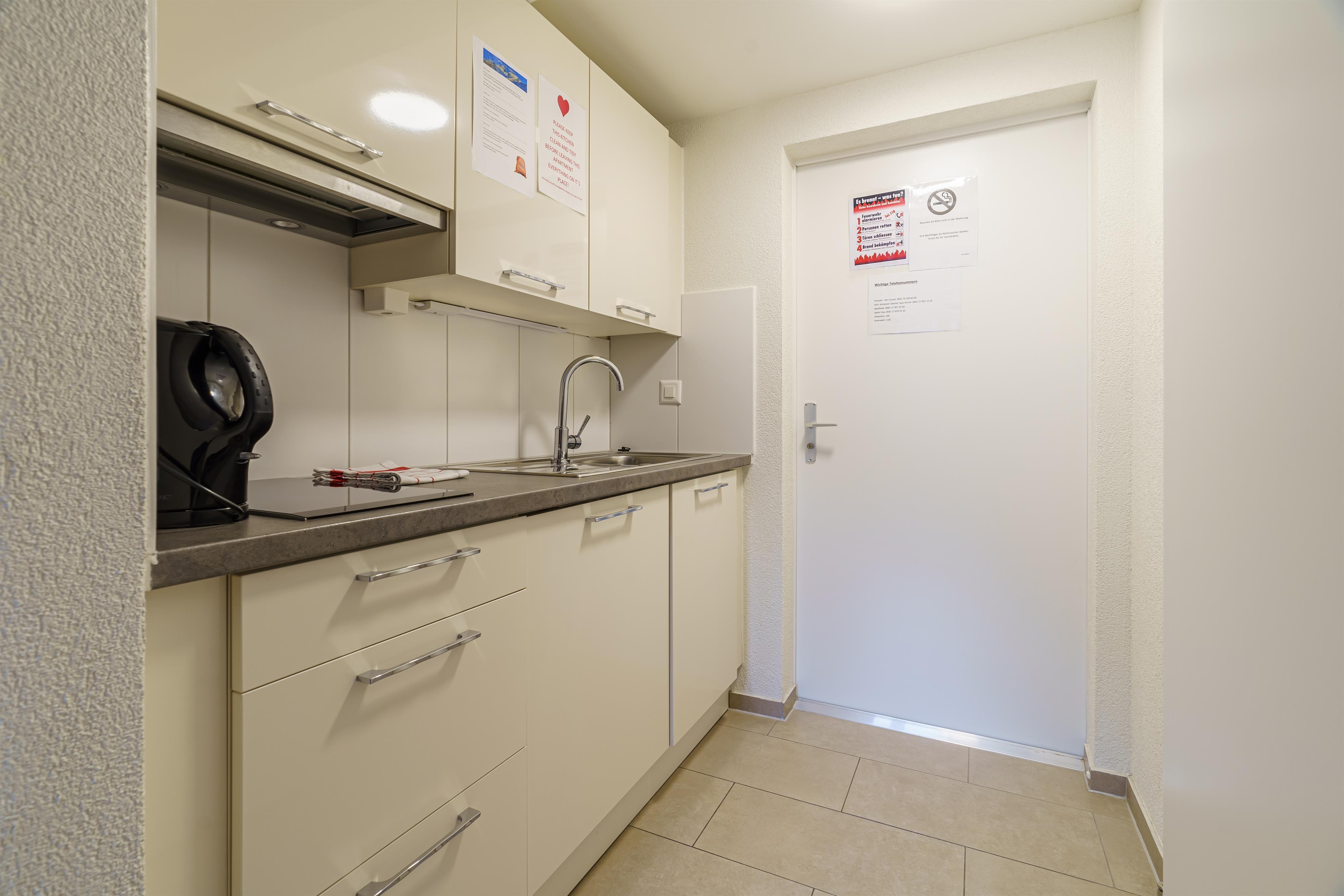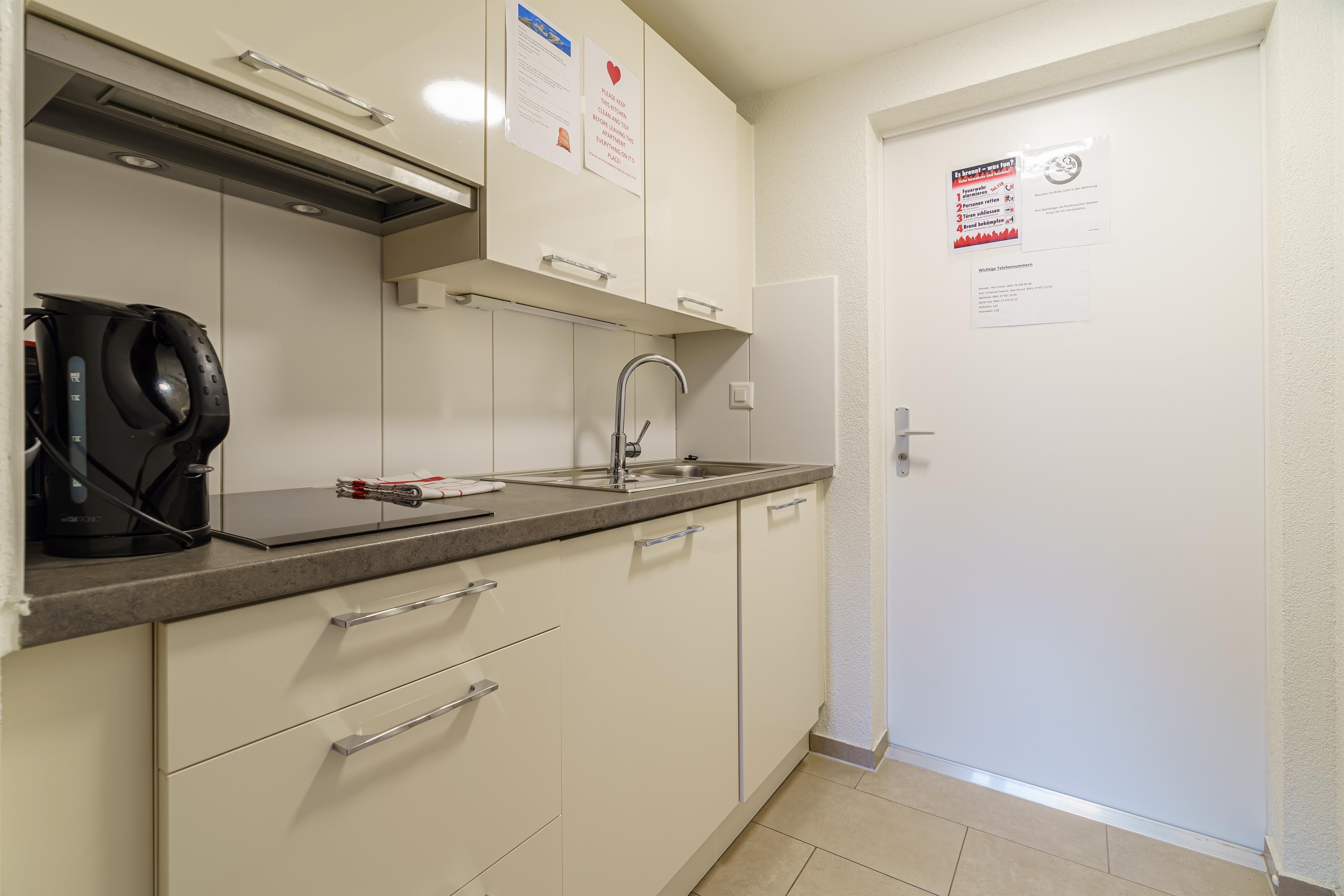 Dieses neuwertige Studio im Haus Astoria (20 m², Erdgeschoss) bietet Platz für 2 Personen und optional ein Kleinkind. Es verfügt über ein Doppelbett, eine gut ausgestattete Küche mit Kühlschrank und Kaffeemaschine sowie ein Badezimmer mit Dusche und WC. Bettwäsche und Handtücher sind im Preis inbegriffen. Außerdem gibt es einen TV-Flachbildschirm. Das Studio ist ein Nichtraucherbereich.