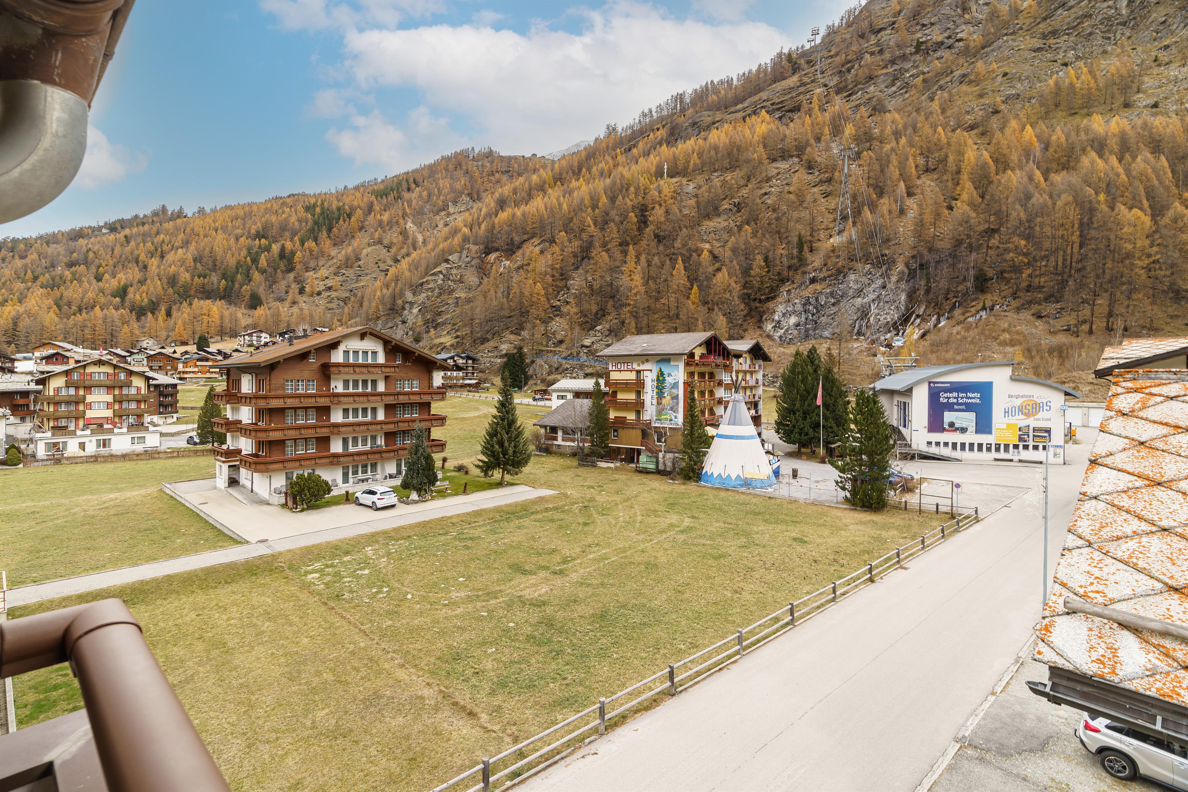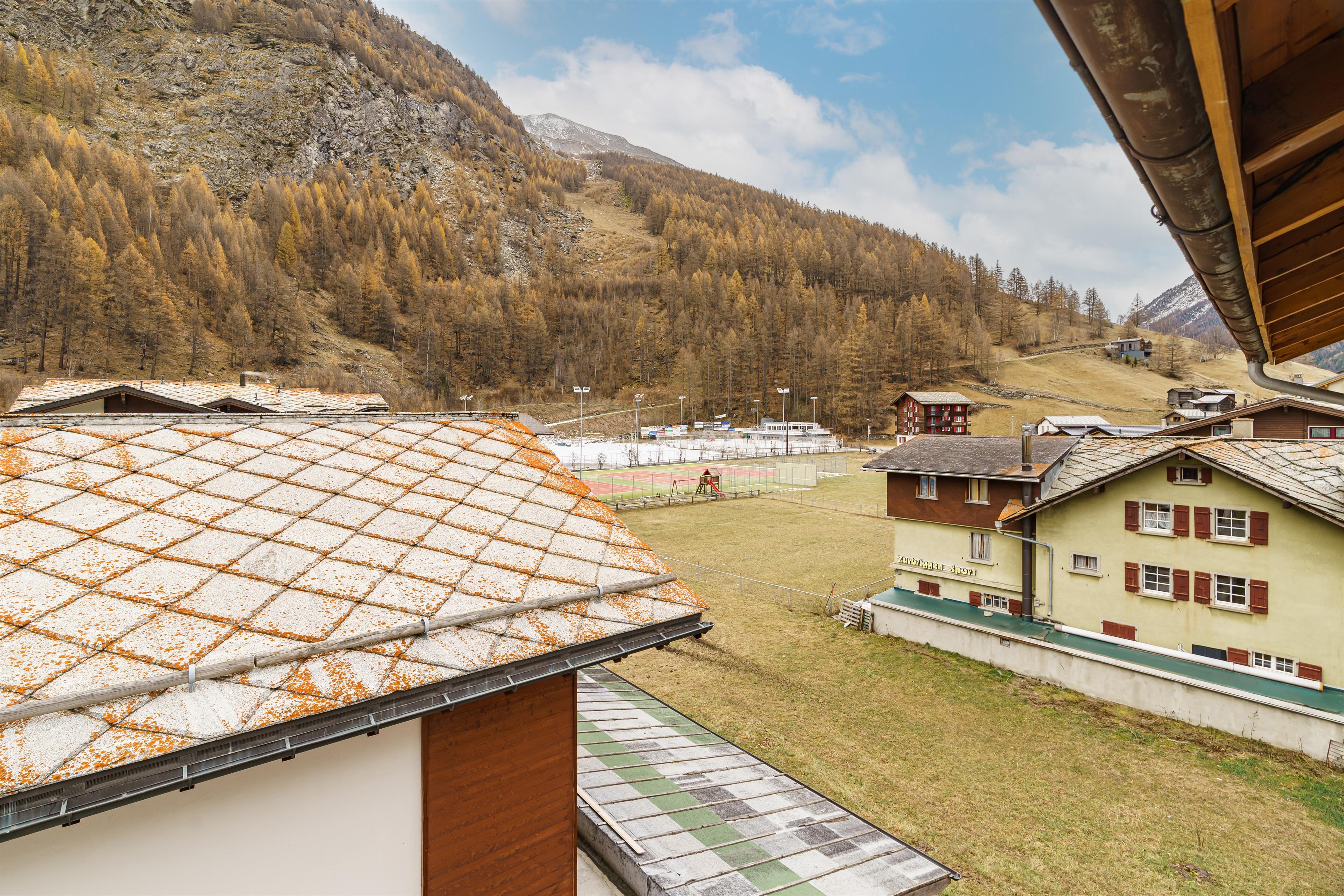 Genießen Sie die frische Luft auf dem Balkon und die ideale Lage für einen erholsamen Urlaub in Saas Grund, mit direktem Zugang zu Wander- und Skigebieten.