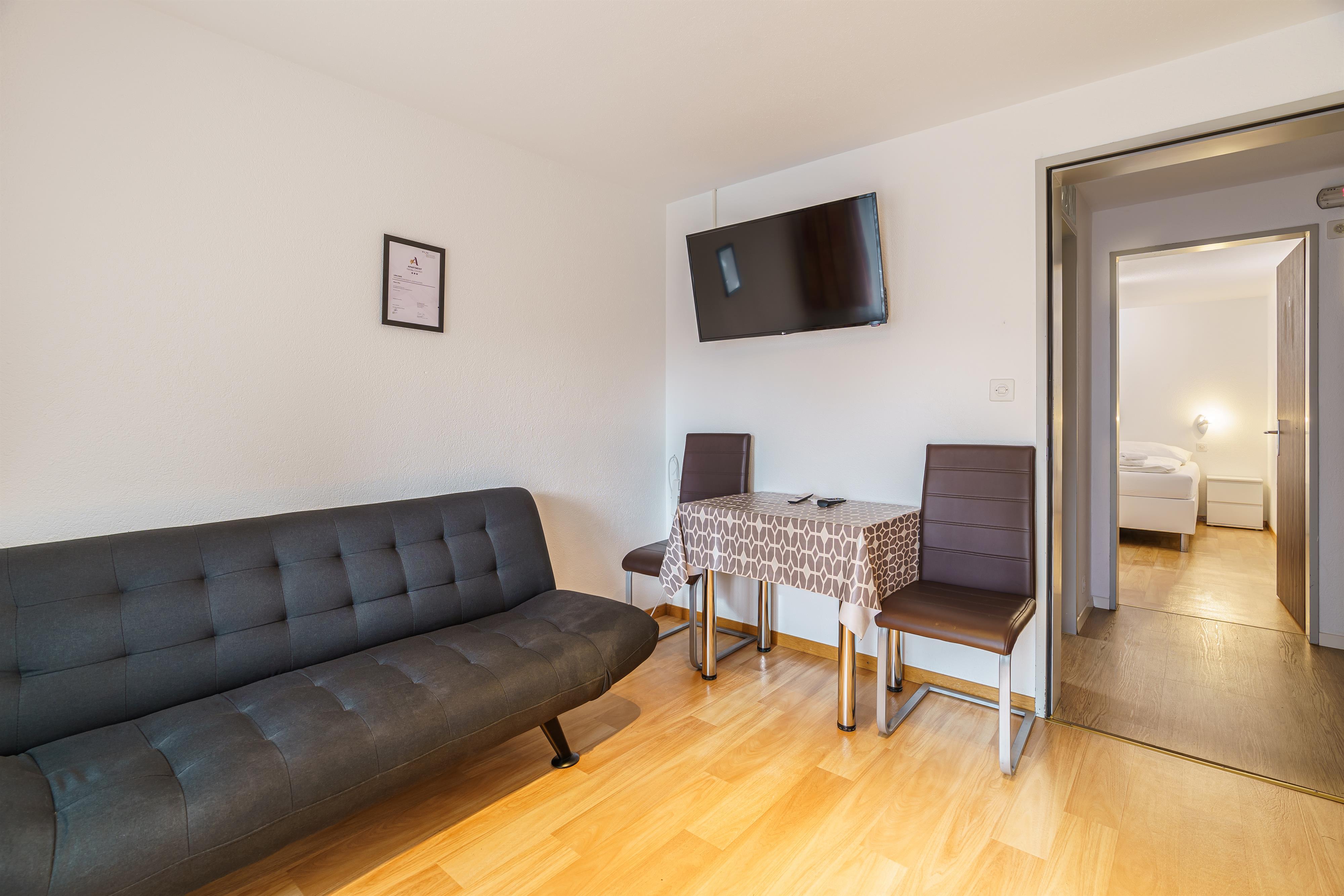Die 35 m² große Ferienwohnung im Haus City bietet Platz für bis zu 3 Personen. Sie besteht aus einem Schlafzimmer mit einem Doppelbett. Zudem gibt es ein Schlafsofa im Wohnzimmer, das für eine weitere Person geeignet ist. Ein Kleinkind kann ebenfalls problemlos untergebracht werden.