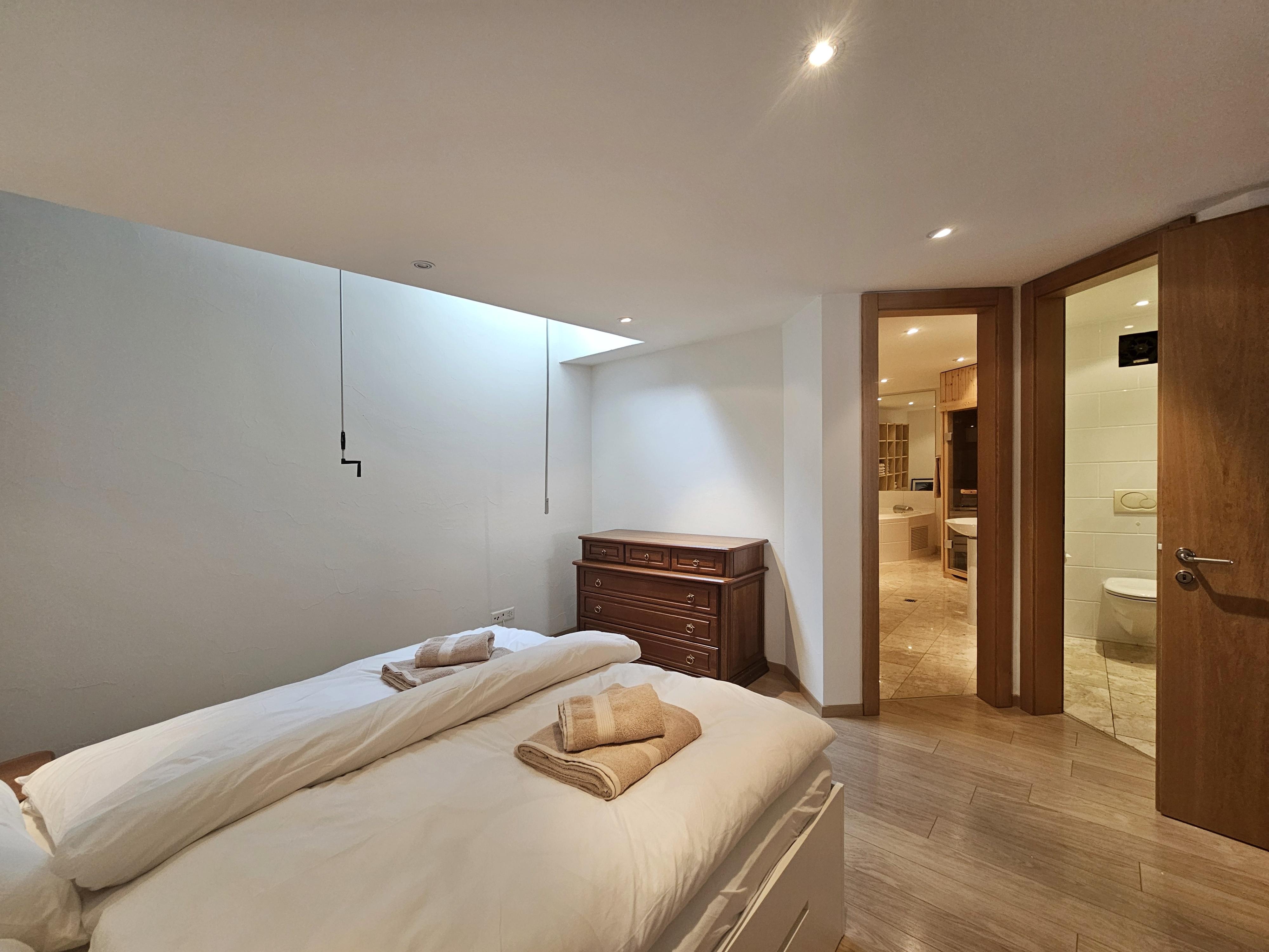 Die Wohnung verfügt über 4 Schlafzimmer, alle mit je einem Doppelbett und 3 Badezimmer. Die Wohnung hat eine offene, moderne Küche und ein geräumiger Wohnbereich mit Terrasse. Highlight der Wohnung ist der private Wellnessbereich mit Jacuzzi & Sauna. Auch eine Waschmaschine befindet sich in der Wohnung, sowie gratis wifi.