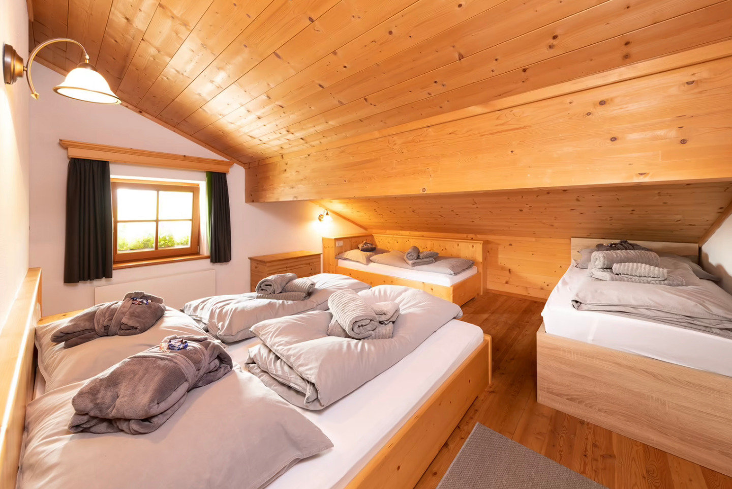 2 Schlafzimmer mit jeweils 1 Doppelbett und 2 Einzelbetten (Vierbettzimmer)