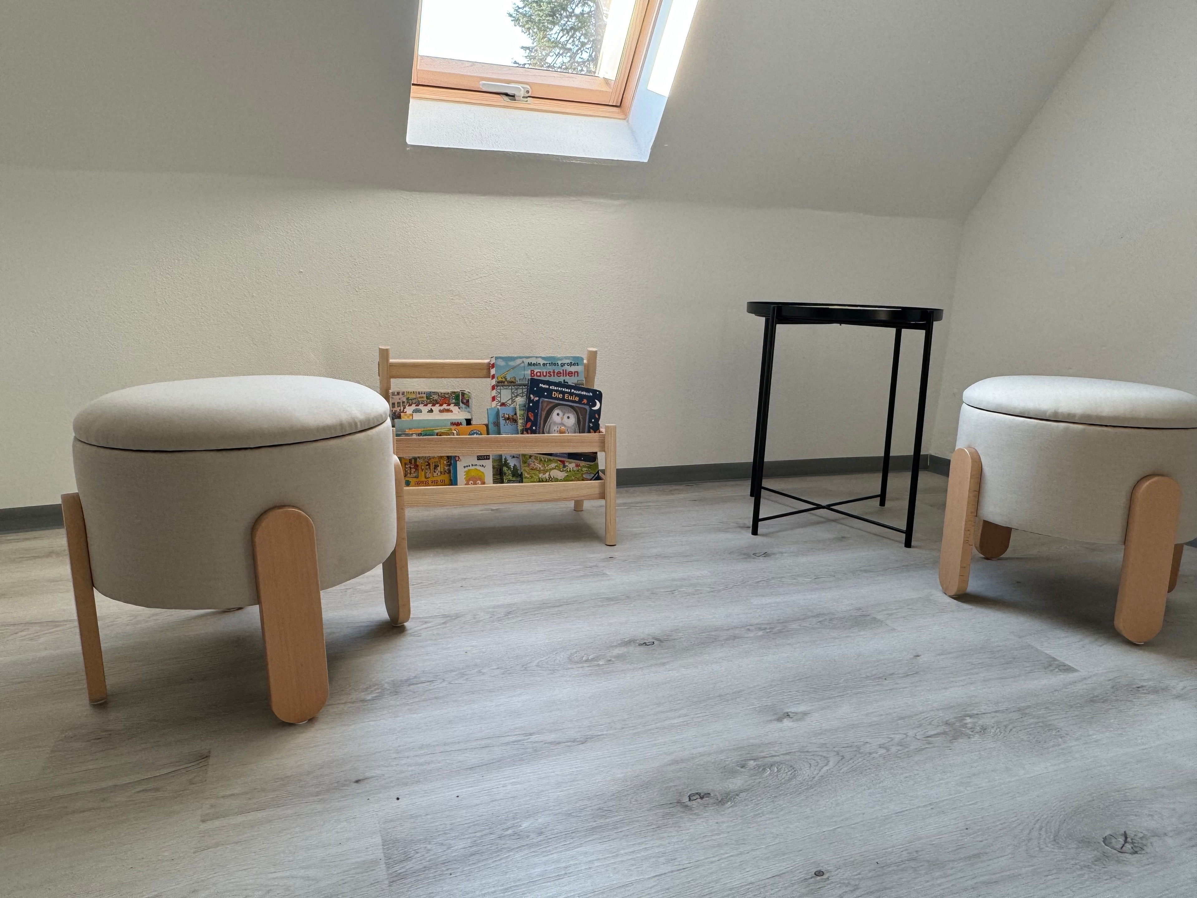 Die steile Treppe in den ersten Stock ist für Kind und Hund mit einem Treppenschutzgitter gesichert. Wer die Treppen auslassen möchte, findet im Erdgeschoss ebenfalls Schlafmöglichkeiten.