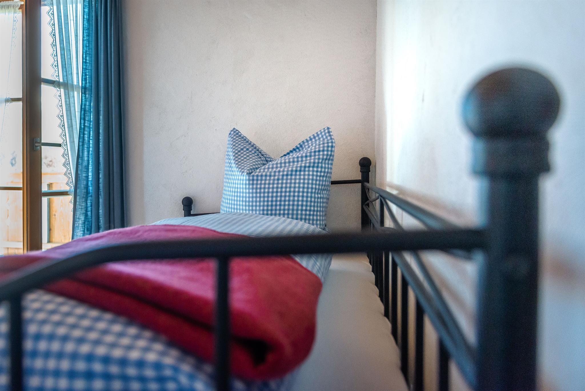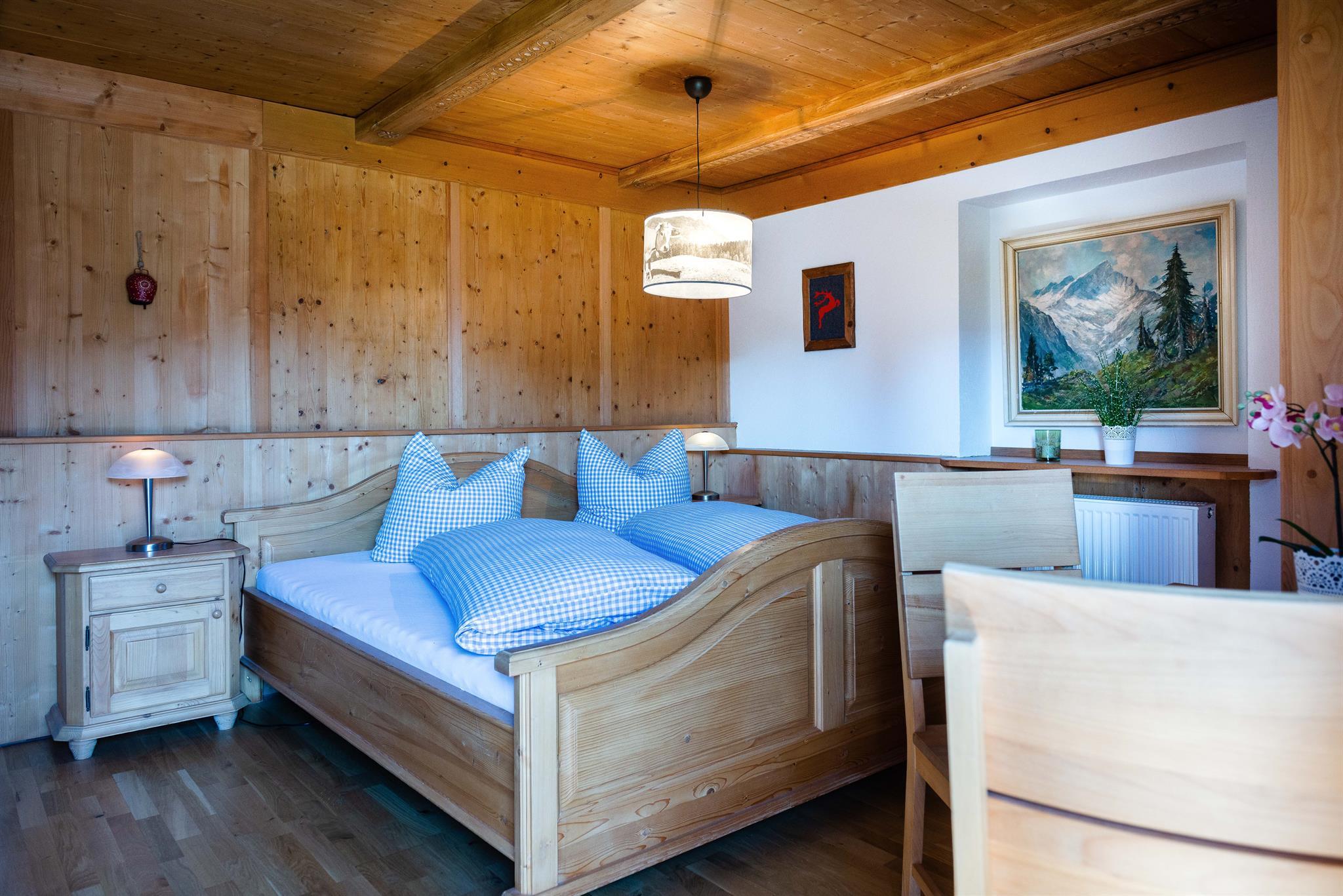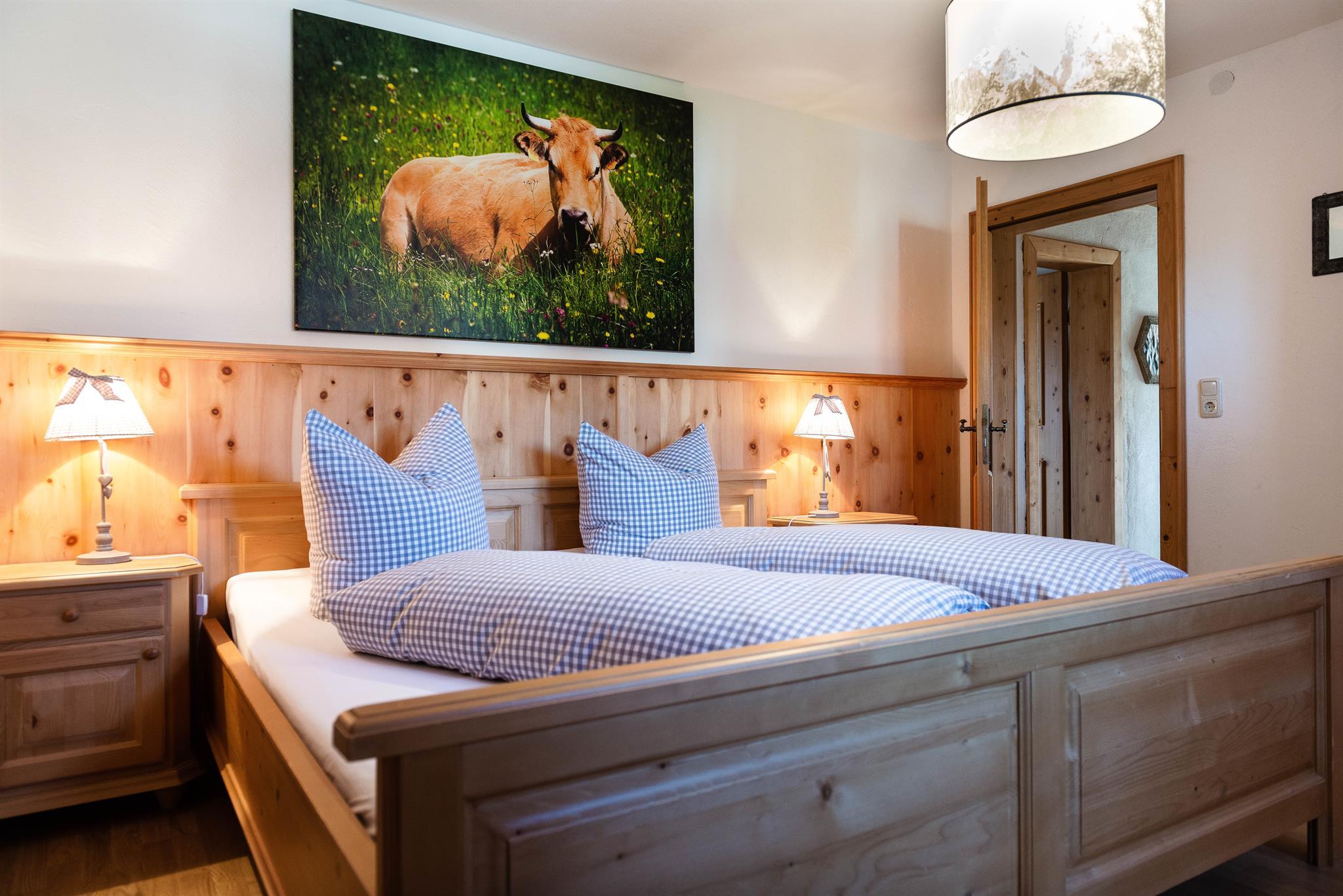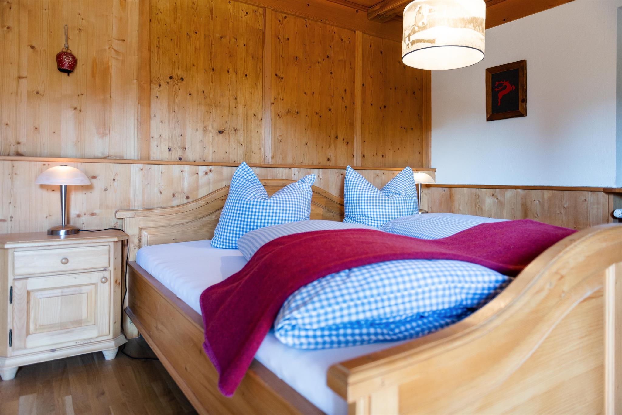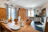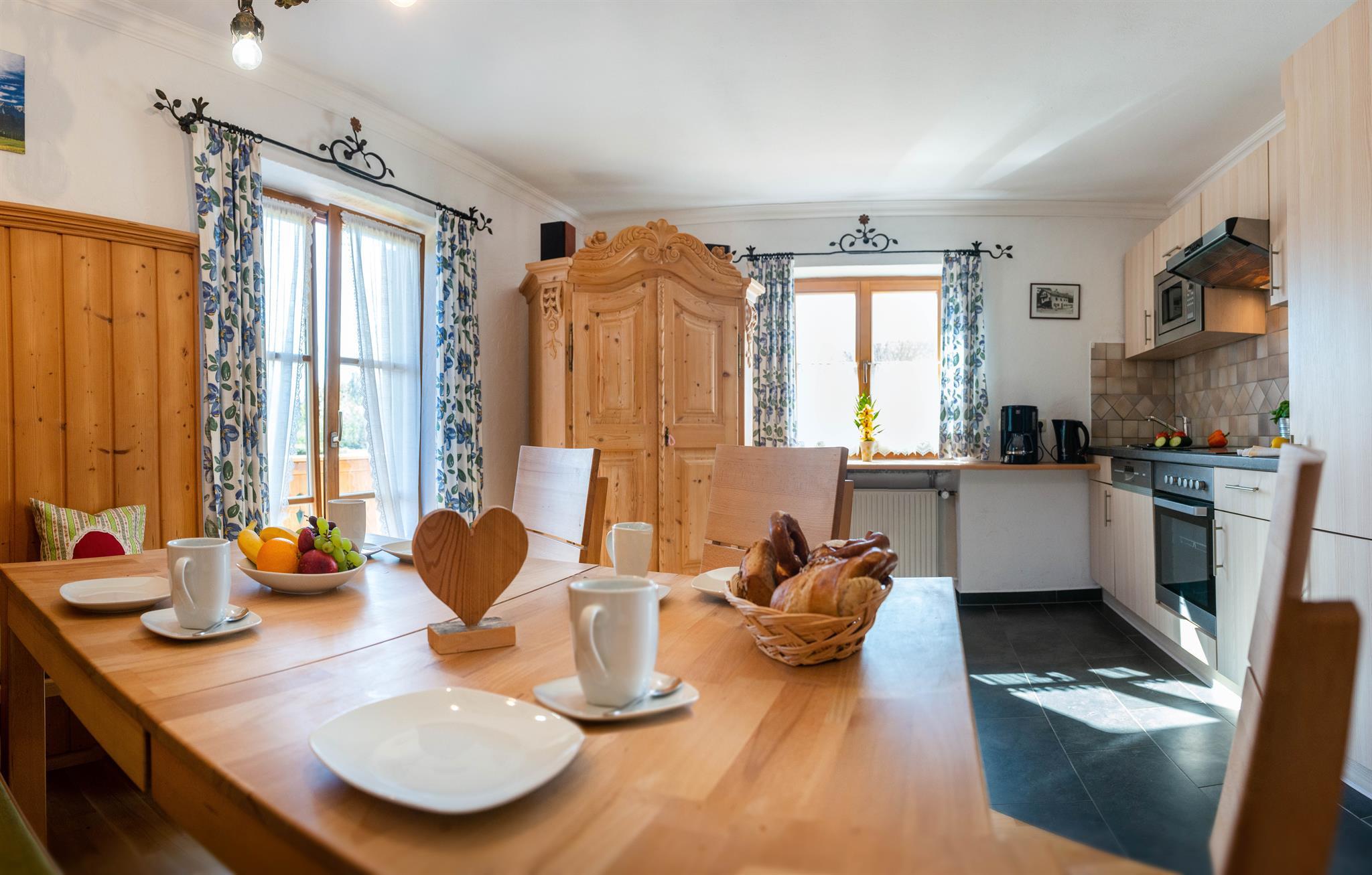 Unsere 2019 neu eingerichtete und gemütliche Ferienwohnung im ländlichen Stil mit 70 m² Wohnfläche befindet sich im 1.Stock und bietet Platz für 1-5 Personen. Die komplett ausgestattete Wohnküche mit Geschirrspüler, Kühlschrank, Herd, Backofen, Mikrowelle, Wasserkocher und Kaffeemaschine lässt keine Wünsche offen. Im Wohnbereich befindet sich eine gemütliche Essecke und ein Kabel-TV sowie ein Radio/CD-Player. Die Ferienwohnung verfügt insgesamt über 2 Schlafzimmer, davon ein Schlafzimmer mit einem Doppelbett und ein Schlafzimmer mit einem Doppel und ein Einzeibett, Vor allem im Sommer können Sie entspannte Abende auf dem Balkon mit herrlichen Gebirgsblick genießen. Das helle und moderne Badezimmer verfügt über eine Dusche und ein WC. Bettwäsche, Handtücher, kostenfreie WLAN-Nutzung, Parkplatz und Endreinigung sind im Preis enthalten.