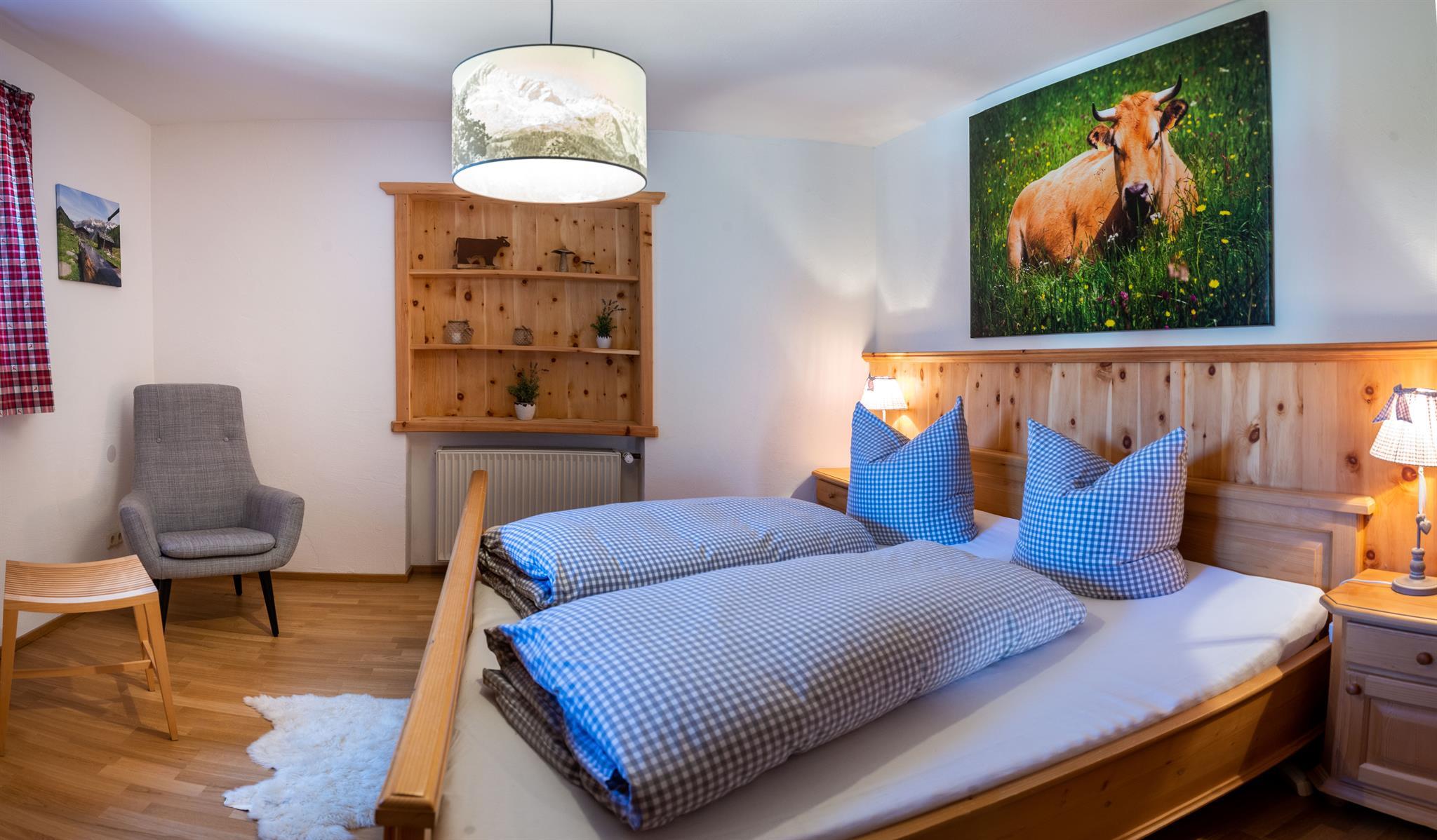 In den Wohnungen 1 Soiern und 5 Finzbach sofern vorher angemeldet sind Hunde erlaubt. Die Wohnungen sind ca. 75 qm bzw. 100 qm groß und für bis zu sechs Personen ausgelegt. In den Wohnungen finden Sie jeweils zwei Schlafzimmer sowie ein Wohnzimmer mit einer Schlafcouch. Zudem verfügen sie über eine voll ausgestattete Küche mit hochwertigen Küchenutensilien und allen notwendigen Geräten für die selbstständige Verpflegung.