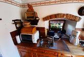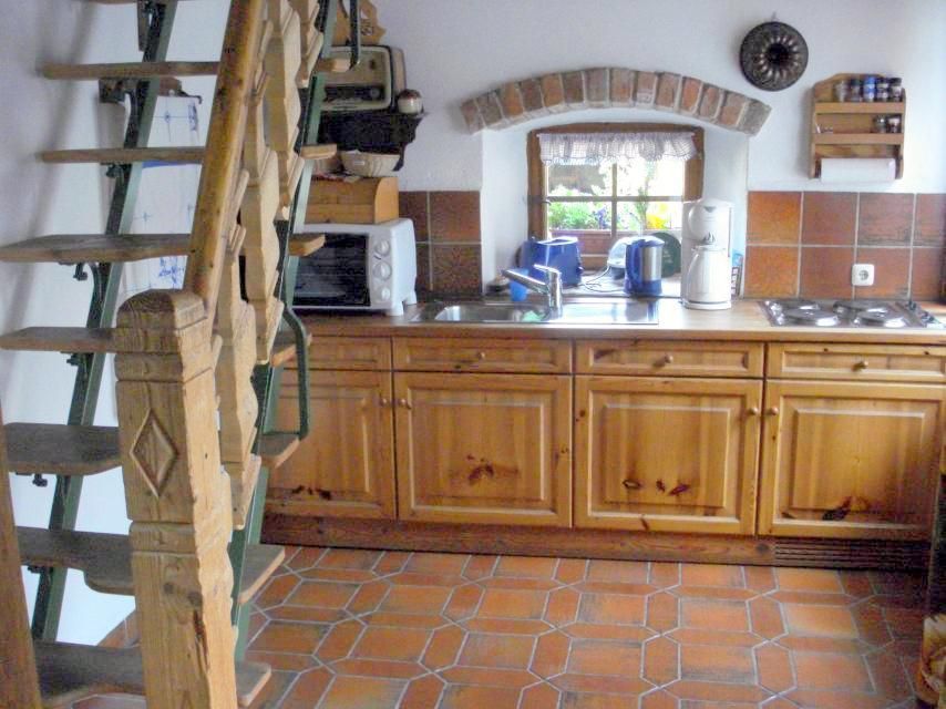 Unser romantisch eingerichtetes Ferienhäuschen verfügt über eine komplett eingerichtete Einbauküche mit Kühlschrank, Kochplatte, Backautomat mit Grillfunktion und Kaffeemaschine, sowie einen Wohnraum mit Schlafcouch, Flachbildschirm und SAT-TV. Über eine Raumspartreppe gelangt man zum Schlafzimmer mit Doppelbett und Kleiderschrank, im Vorraum befinden sich ein weiteres Schlafsofa sowie ein Kinderbett. Bad mit Dusche/WC und eine Zentralheizung sind ebenfalls vorhanden.