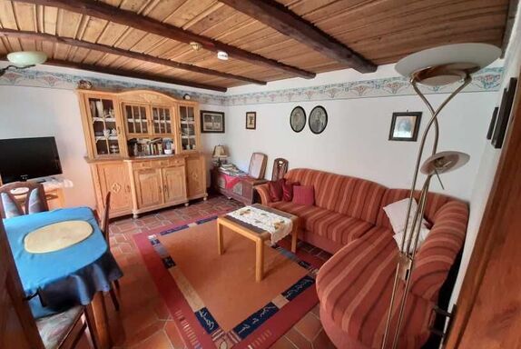 Eine Sitzgruppe lädt dazu ein, bei schönem Wetter das Frühstück im Freien einzunehmen. Eine überdachte Sitzecke sowie eine Grillmöglichkeit sind vorhanden. Zwei Gartenliegen ermöglichen Ihnen, eine entspannte Zeit inmitten der Blumenpracht des Gartens zu genießen.