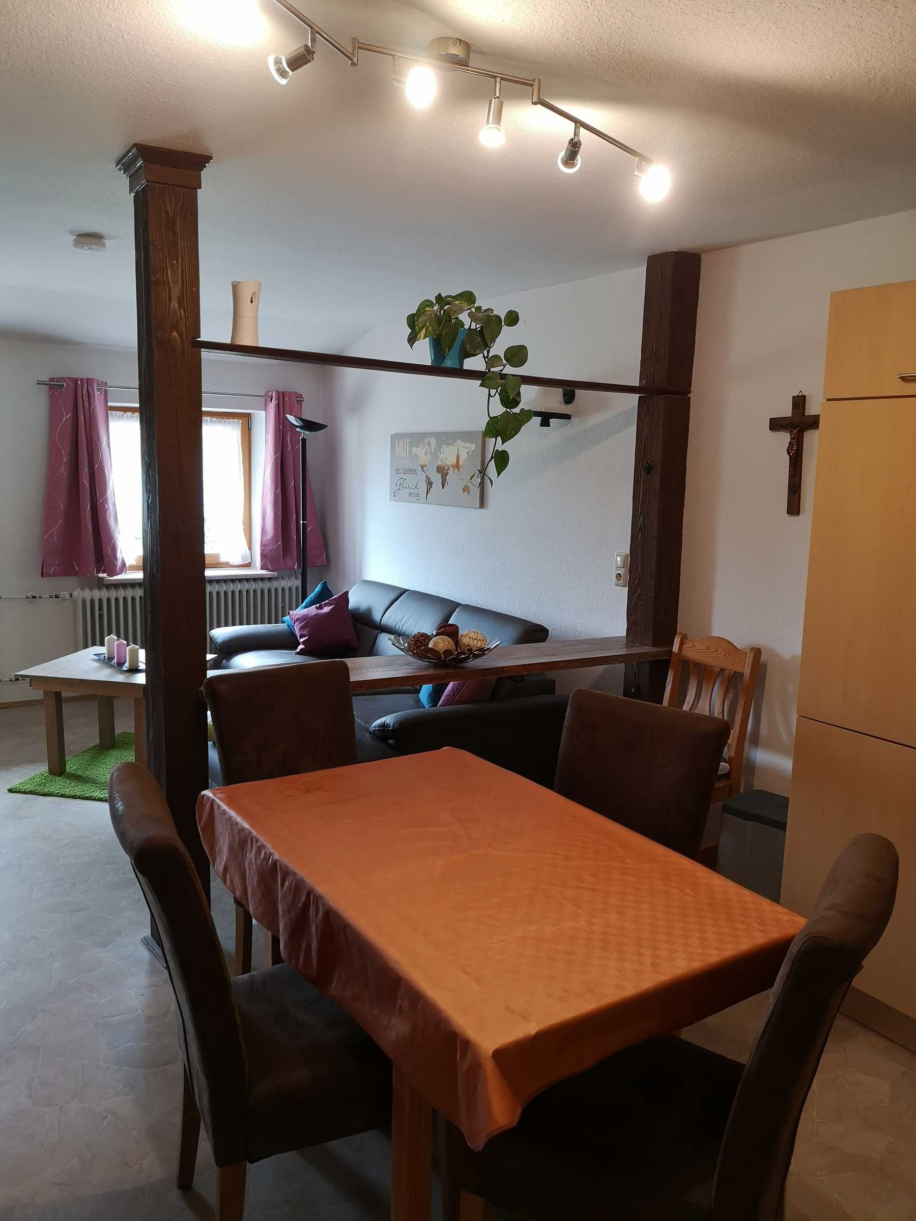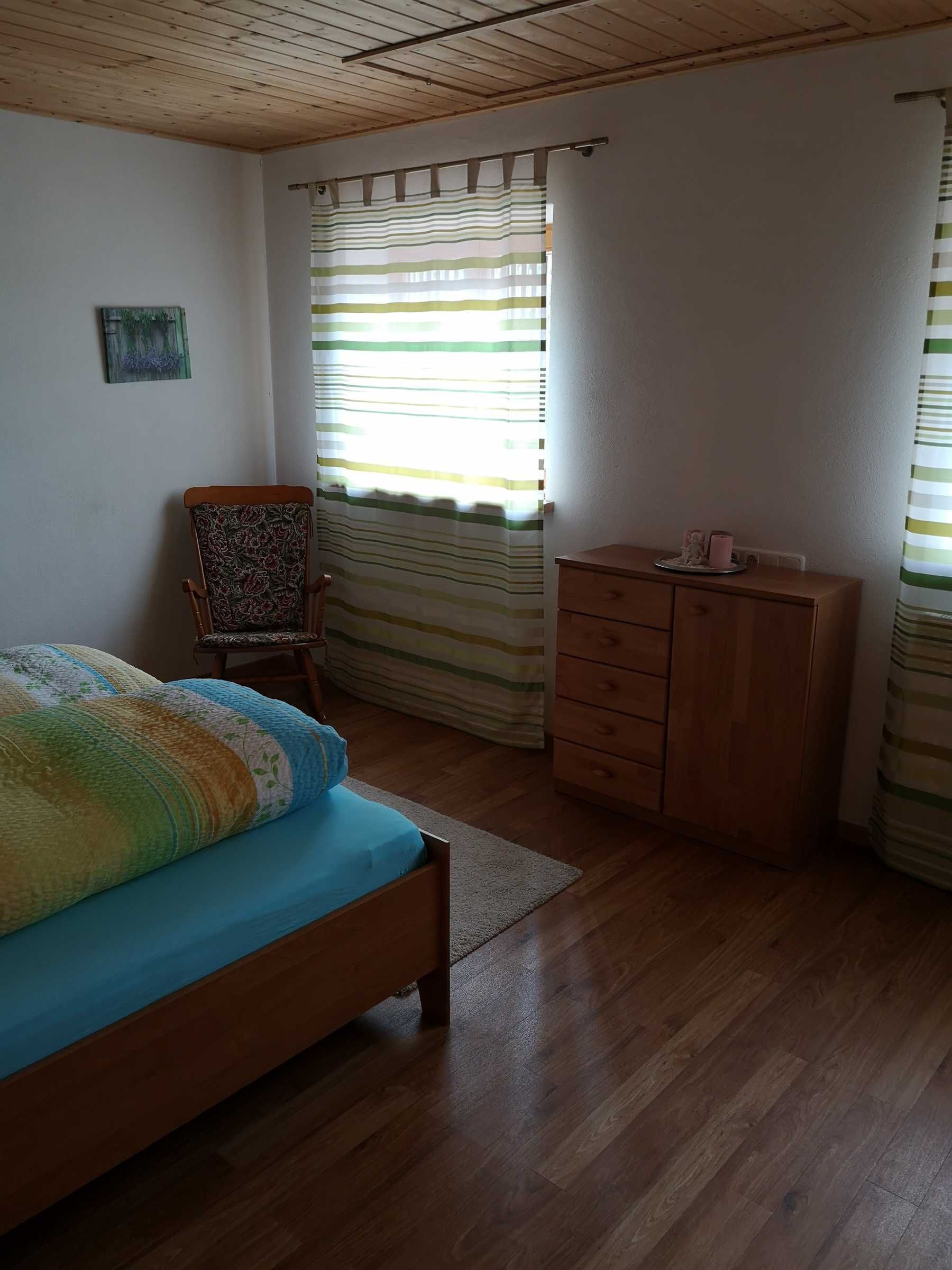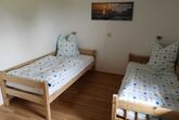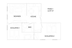 Die gemütliche 3 Zimmer-Wohnung befindet sich im 1. Stock und bietet Platz für bis zu 4 Personen. Sie verfügt über 2 Schlafzimmer (Doppelbett und 2 Einzelbetten), einen Wohnraum mit komplett eingerichteter Küche sowie ein Bad mit Dusche und WC.