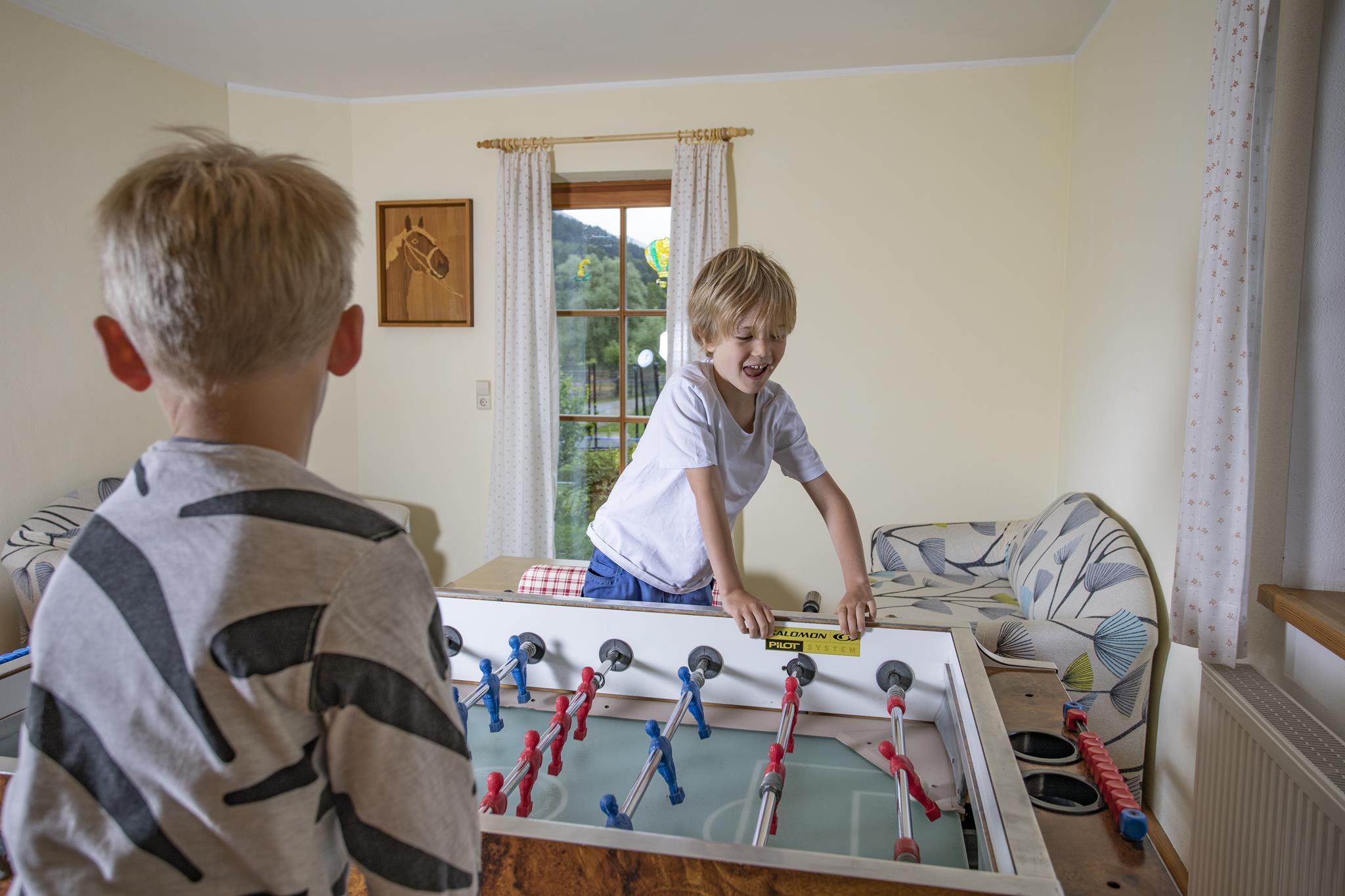 Über 10.000 m² Spiel- und Liegewiese, Kinderspielhaus und Kinderspielzimmer, Jugendraum mit Tischfußball, verschiedene Spielgeräte, bis 10 Fahrräder für groß und klein mit Kindersitzen sowie das bei Kindern sehr beliebte Go Kart. Die Ponys bürsten, mit den Katzen Spielen, die Schweinderln füttern und kratzen, die Tiere streicheln und natürlich die Mithilfe und Mitarbeit im Stall.