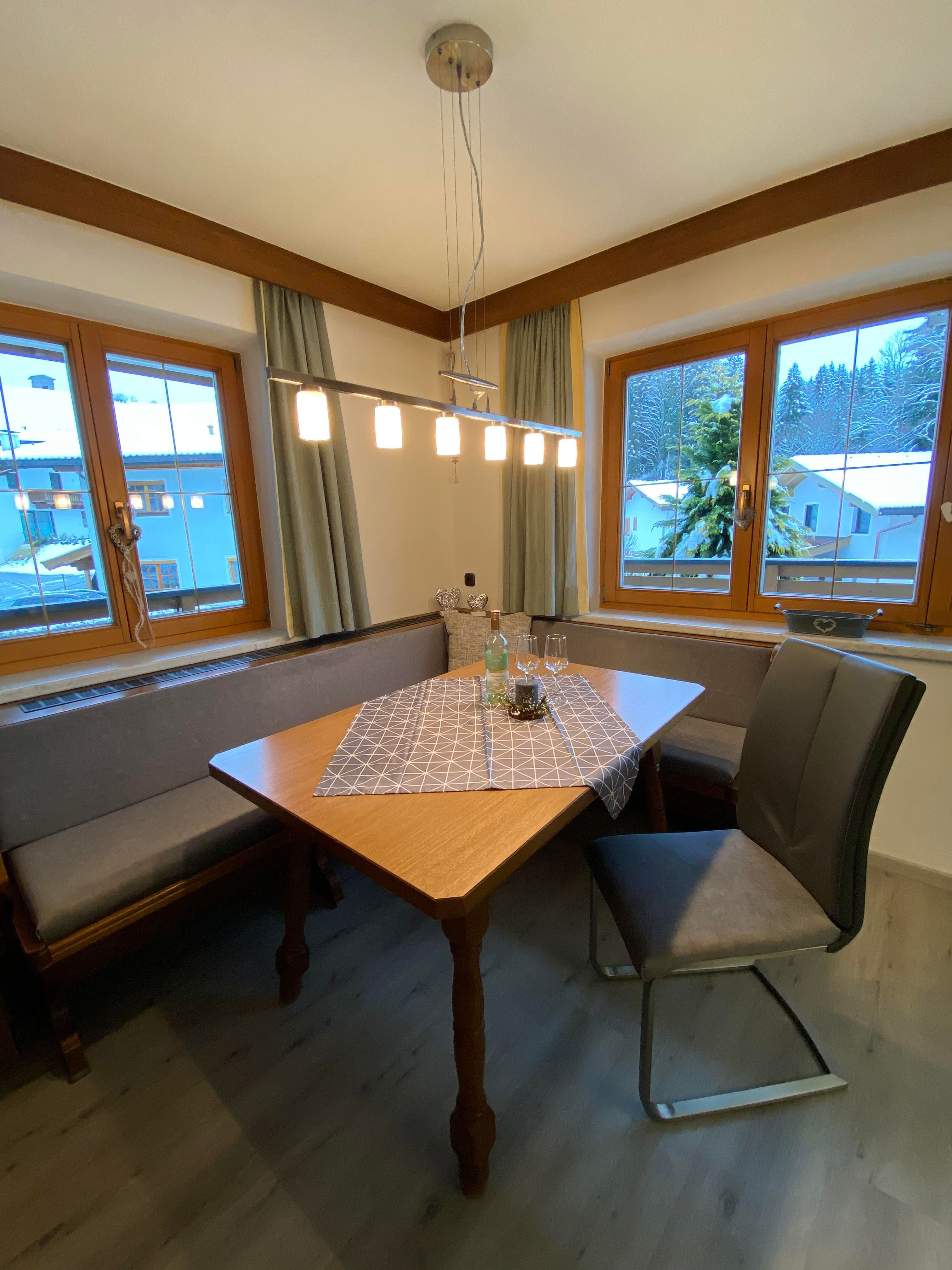 Unser Haus liegt etwa 10 Gehminuten vom Ortskern von Kössen entfernt. Hier können sie auf der großzügigen Terasse die Sonne genießen. Im Garten befindet sich eine Schaukel und ein Trampolin. Das Apartement befindet sich im Erdgeschoss mit separatem Eingang. Das Auto findet im Carport platz.