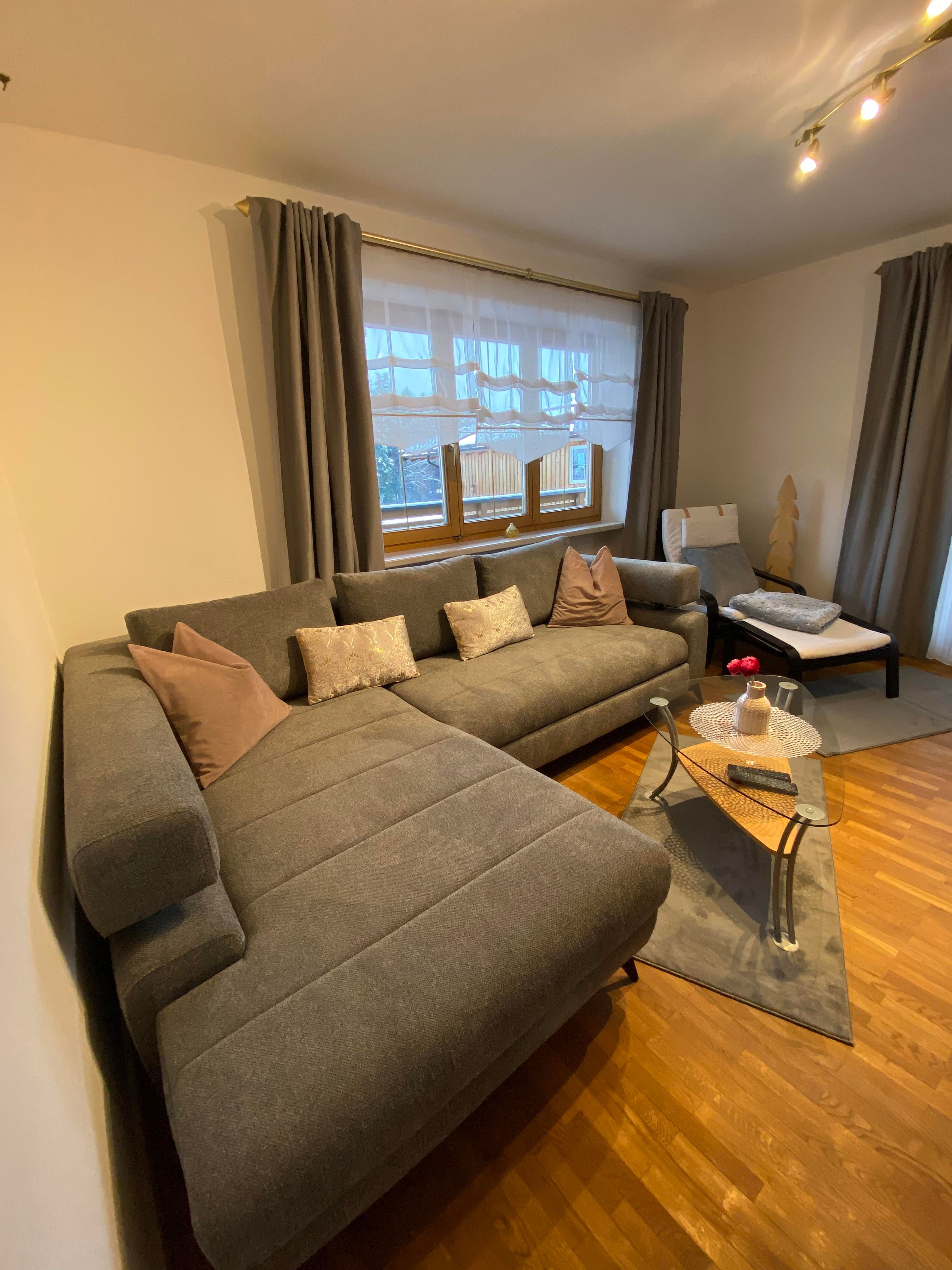 Die 65m² große Ferienwohnung bietet Platz für bis zu 4 Personen. Die liebevoll eingerichtete Wohnung verfügt über eine voll ausgestattete Küche, ein komfortables Schlafzimmer sowie einen Wohnbereich mit herrlichem Bergblick.