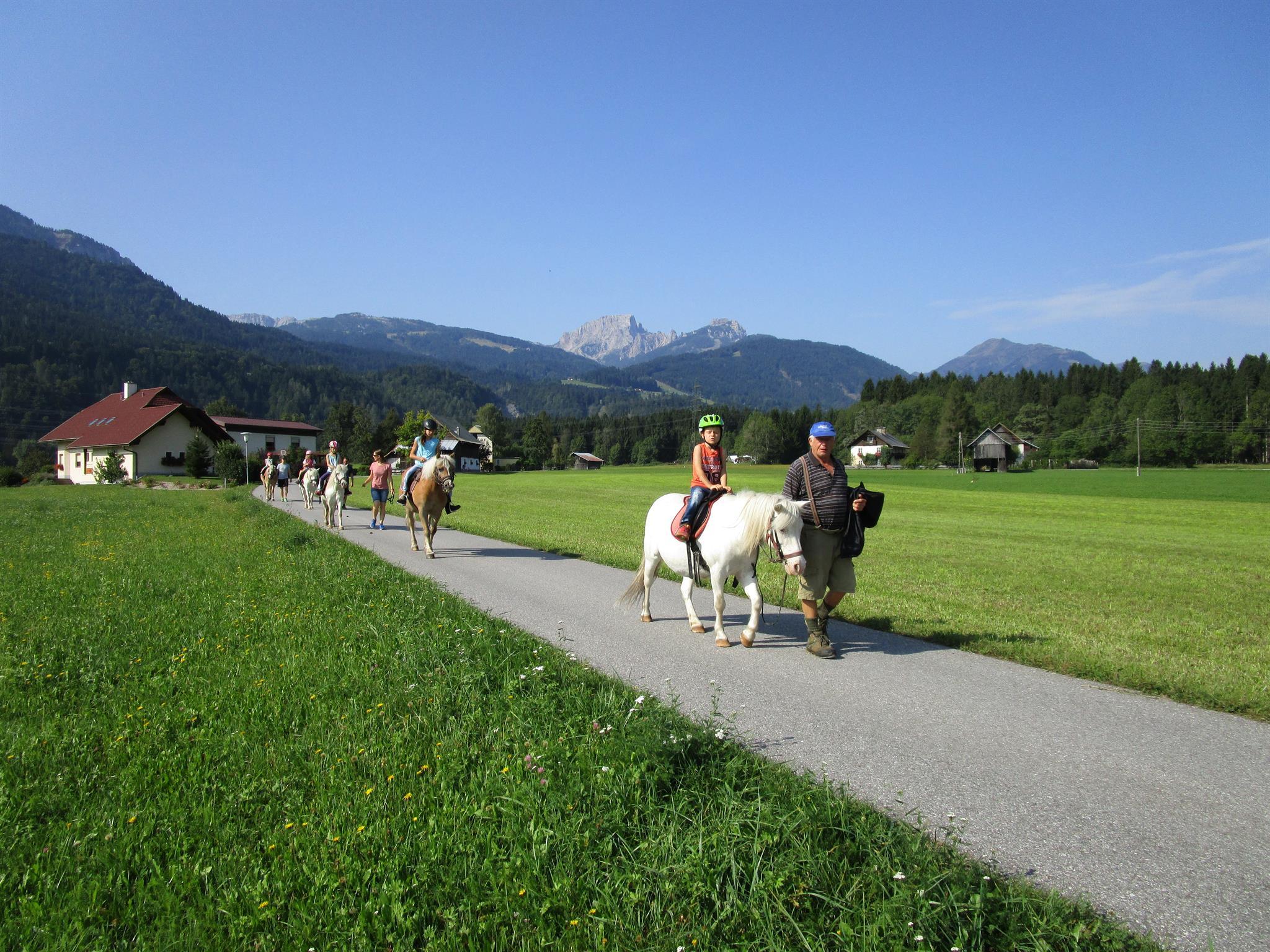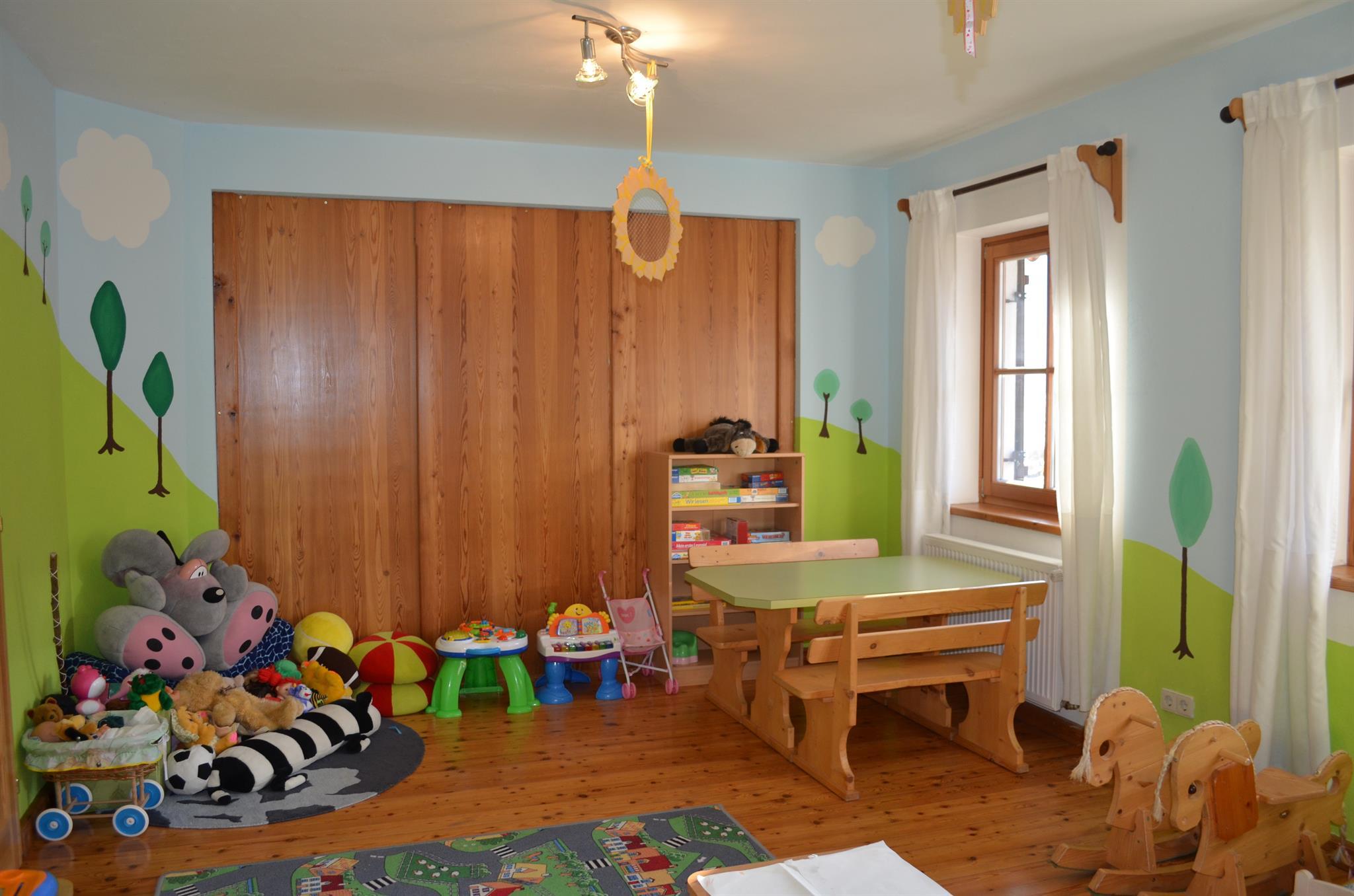 Über 10.000 m² Spiel- und Liegewiese, Kinderspielhaus und Kinderspielzimmer, Jugendraum mit Tischfußball, verschiedene Spielgeräte, bis 10 Fahrräder für groß und klein mit Kindersitzen sowie das bei Kindern sehr beliebte Go Kart. Die Ponys bürsten, mit den Katzen Spielen, die Schweinderln füttern und kratzen, die Tiere streicheln und natürlich die Mithilfe und Mitarbeit im Stall.