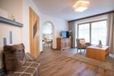 Neu renovierte Ferienwohnung für 2 Personen im alpinen Stil mit 1 Schlafzimmer, Bad mit Dusche und Badewanne und separater Toilette, einem gemütlichen Wohnraum mit Sitzgruppe und Kachelofen, komplett ausgestatteter Küche sowie Terrasse mit kleinem Garten.