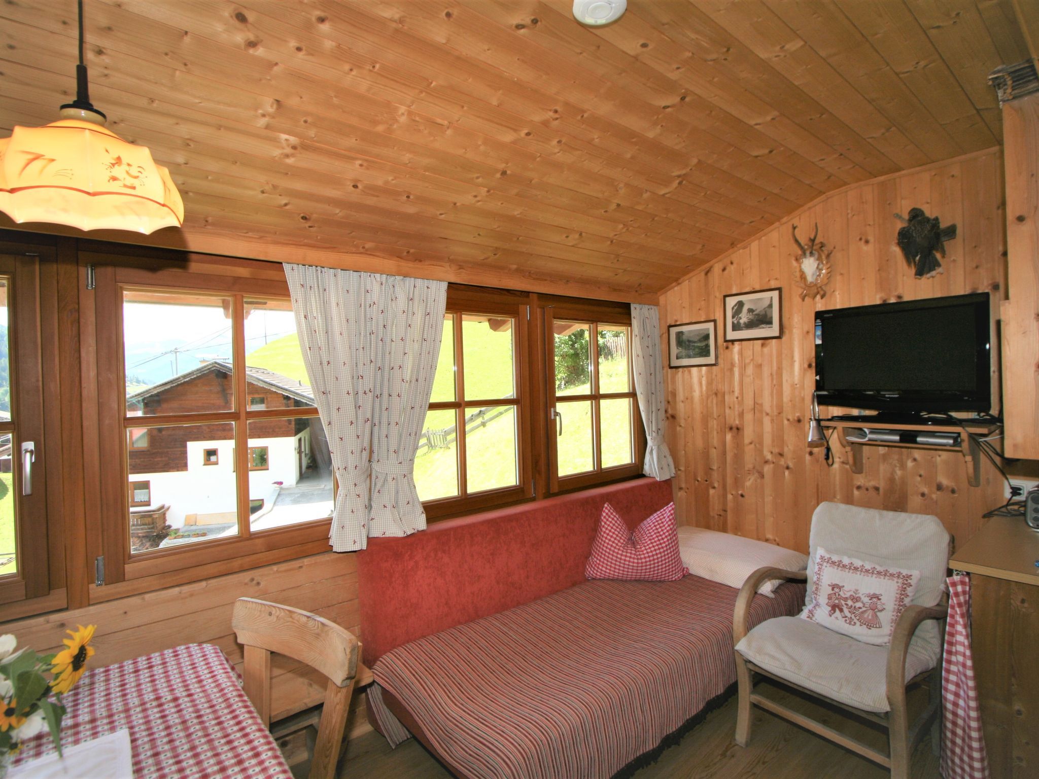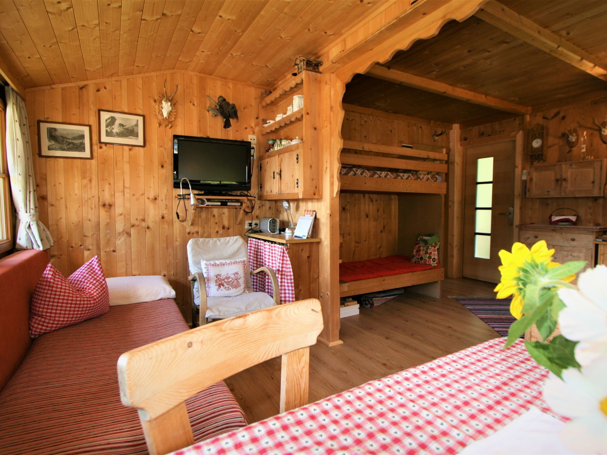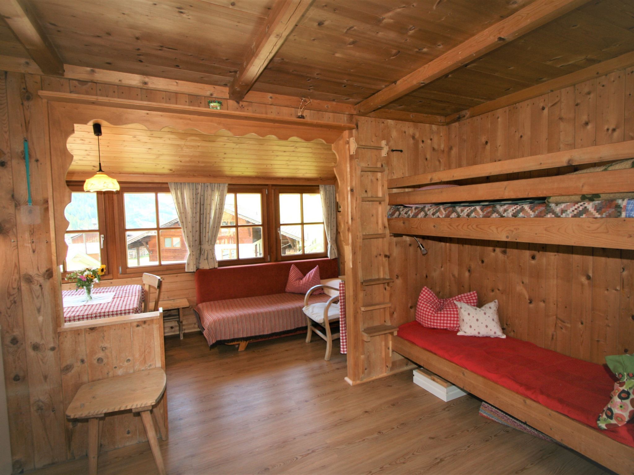 Chalet Antritt, 2-Zimmer-Haus 50 m2 auf 2 Stockwerken. Einfach und rustikal eingerichtet: offenes Wohn-/Esszimmer mit 1 Doppeldiwanbett (140 cm, Länge 200 cm), Essecke und Sat-TV. Offene Galerie mit 1 Bett. Wohnküche (4 Kochplatten, Backofen). Unteres Geschoss: 1 Zimmer mit 1 Bett (Länge 200 cm), 1 Doppelbett (Länge 200 cm). Dusche/WC. Holzheizung. Balkon. Balkonmöbel, Liegestühle (2). Zur Verfügung: Internet (Wireless LAN, gratis). Bitte beachten: Nichtraucher-Haus. Bei der Galerie handelt es sich um einen Gang, der durch einen Vorhang abgetrennt wird . Holzherd zum Heizen. Anstelle eines abgeschlossenen Schlafzimmers befinden sich manche Schlafplätze in einem offenen Bereich (Galerie, Nische etc.).