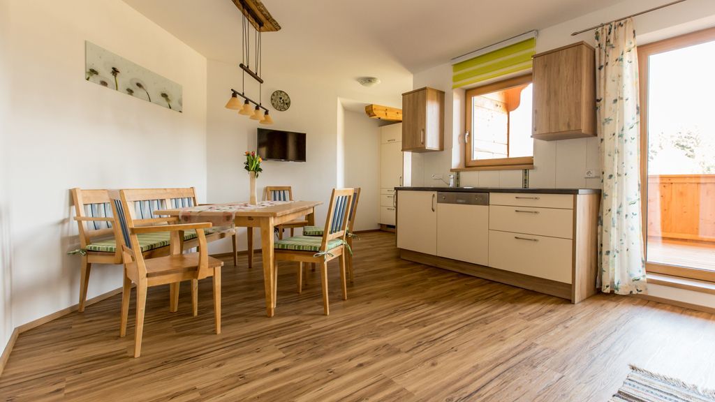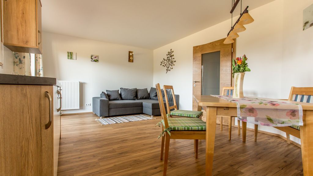 Die im ländlichen Stil eingerichtet, kombiniert mit einem Touch moderner Raffinesse macht es so richtig gemütlich. Die Ferienwohnung bietet Platz für 4 Personen und verfügt über 2 getrennte Schlafzimmer, ein geräumig-gemütlicher Wohnraum mit großer Küche und Geschirrspüler. Im Vorhaus sind Bad und WC getrennt und ein herrlich großer Holzbalkon (18m²) verschönert die tolle Wohnung, wo Sie schon am Morgen die Sonne genießen können.