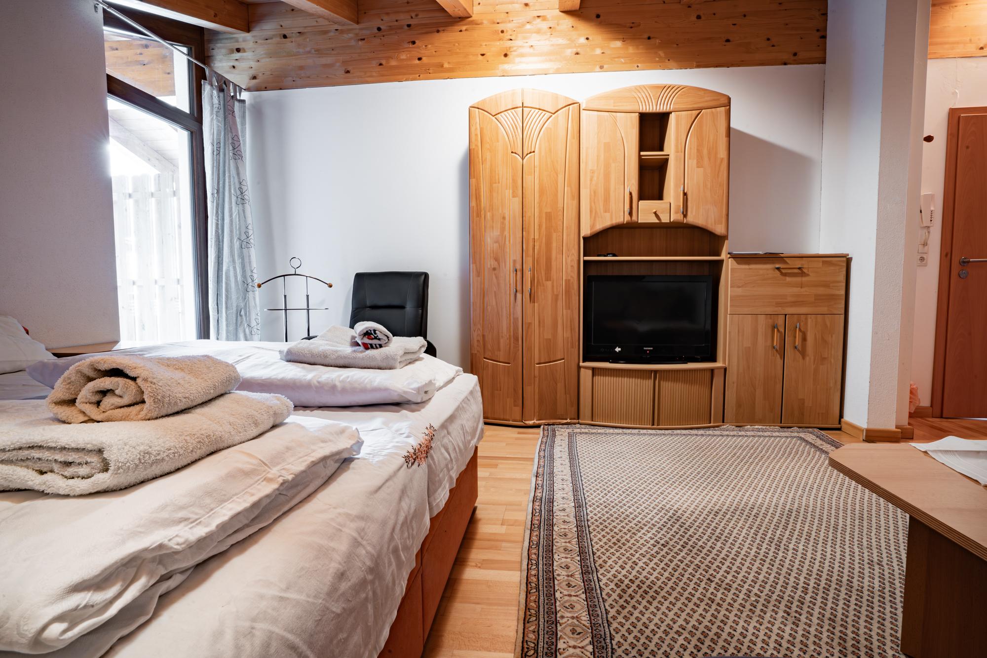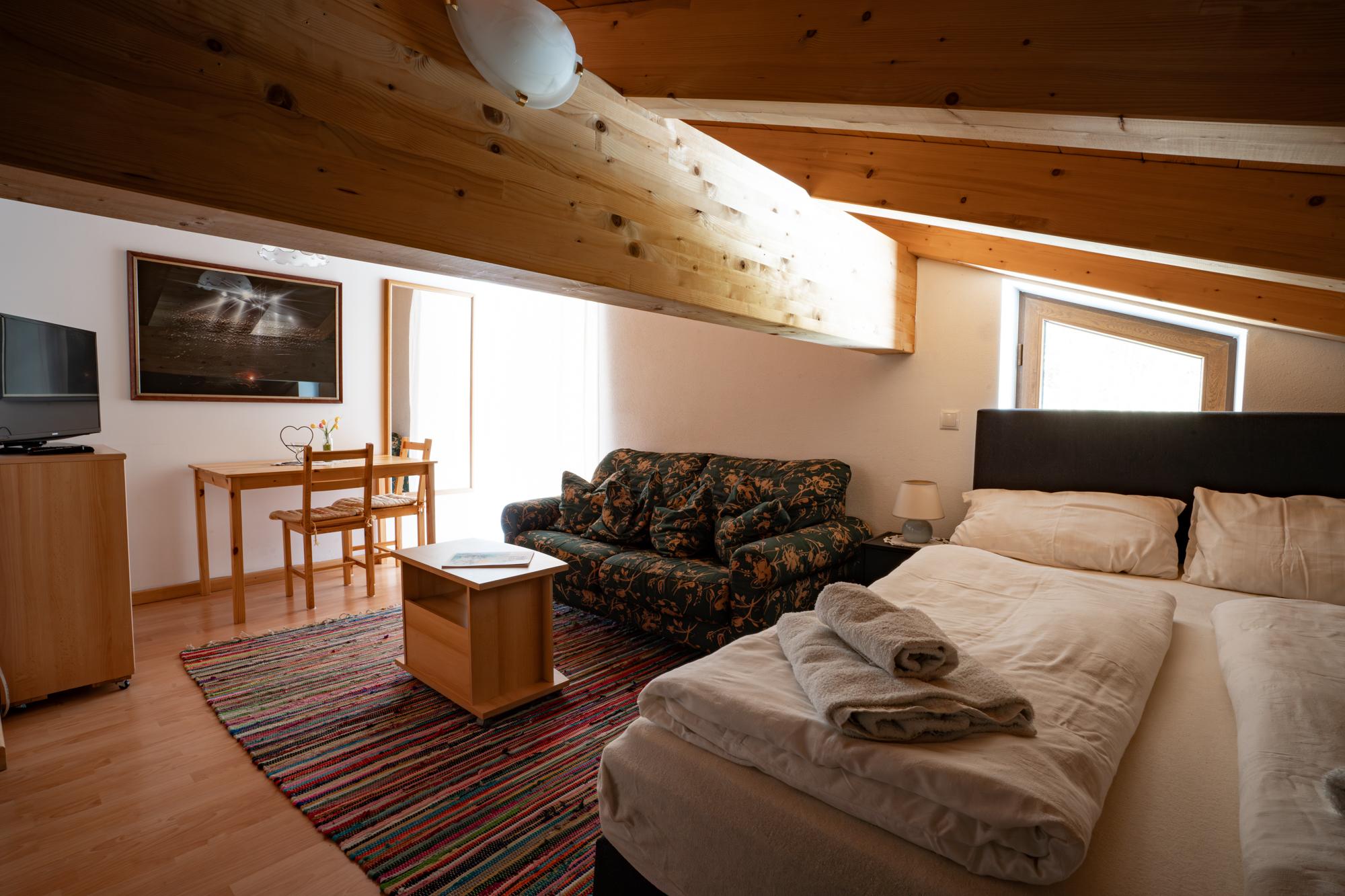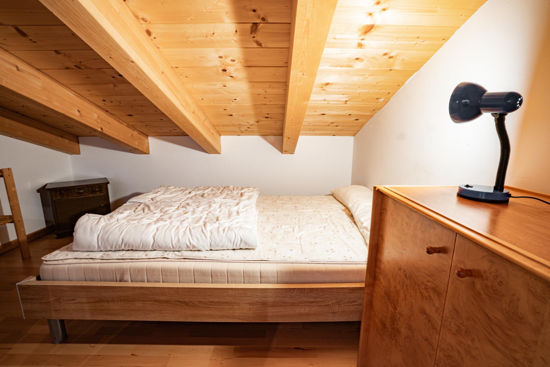 Diese 42 m² große Wohnung bietet einen kombinierten Schlaf- und Wohnraum mit einem Doppelbett sowie eine Küche, die ebenfalls ein Doppelbett beinhaltet. Die Einrichtung ist rustikal und schafft eine gemütliche Atmosphäre, die perfekt für die Erholung nach einem aktiven Tag in den Bergen ist. Die Küche ist einfach ausgestattet, bietet jedoch alles Notwendige für die Selbstversorgung. Diese Wohnung ist ideal für Gäste, die nach einem authentischen und ruhigen Alpenerlebnis suchen.
