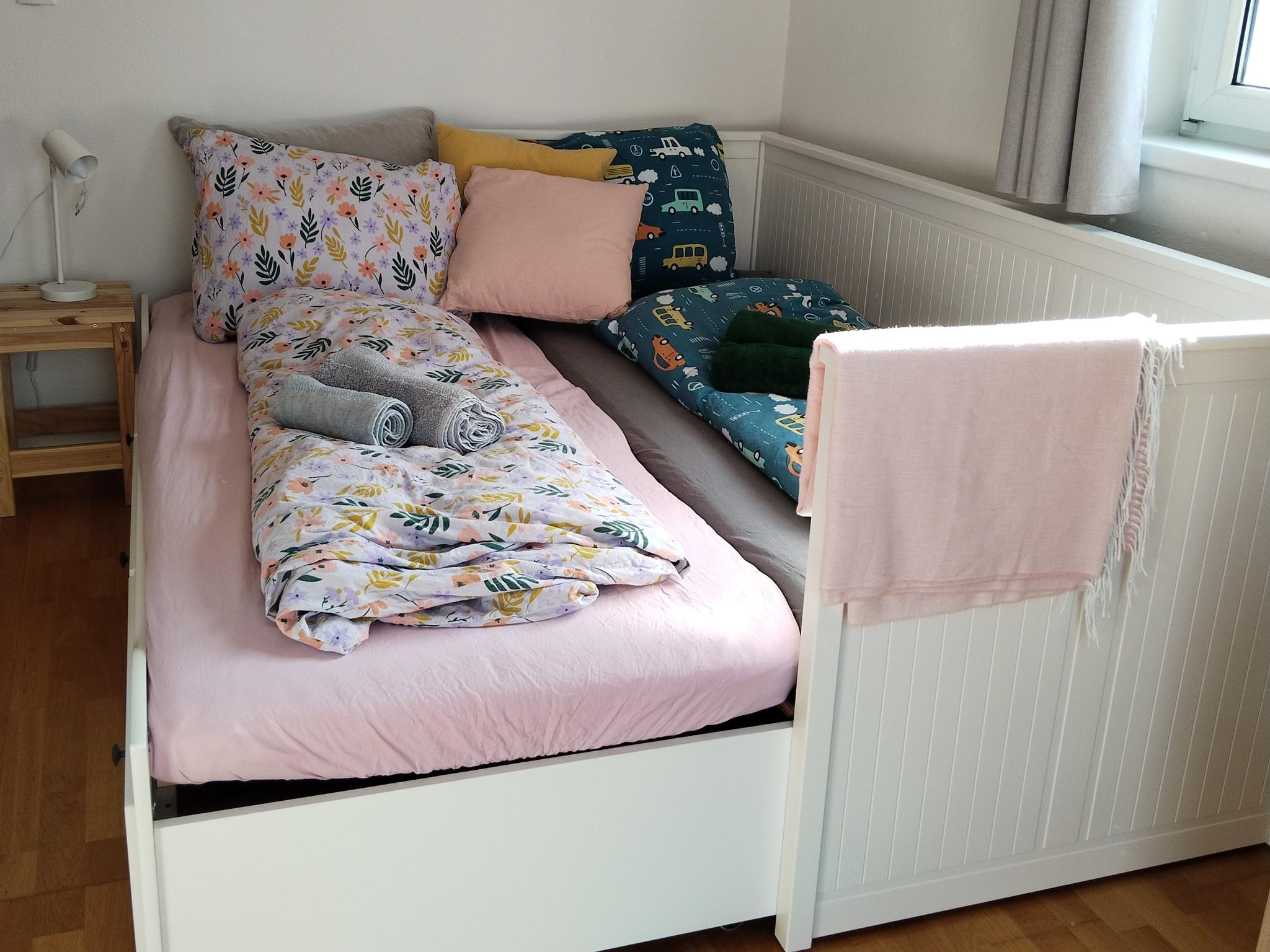 Es kann flexibel gewählt werden, ob man nur die Zimmer im 1. Stock oder auch das 2. Obergeschoss bucht. Der Preis richtet sich nach der Zimmeranzahl.